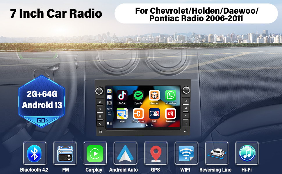 【موديلات السيارات المتوافقة】 متوافقة مع راديو السيارة شيفروليه/هولدن/دايو/بونتياك 2002 2006-2011، هذا ستيريو السيارة الذي يعمل بنظام Android خاص وتشغيل القابس. كاميرا الرؤية الخلفية AHD والميكروفون متضمنان. وظيفة التحكم الصوتي Apple CarPlay وAndroid Auto المدمجة، تدعم وصلة المرآة لهواتف Android وiOS. شاشة لمس عالية الدقة مقاس 7 بوصات، ونظام تحديد المواقع العالمي (GPS) وواي فاي مدمج، وبلوتوث، ونظام أندرويد مطور مع مساحة تخزين أكبر للذاكرة، وذاكرة الوصول العشوائي (RAM) سعة 2 جيجا بايت، وذاكرة قراءة فقط (ROM) سعة 64 جيجا بايت لتثبيت العديد من التطبيقات.