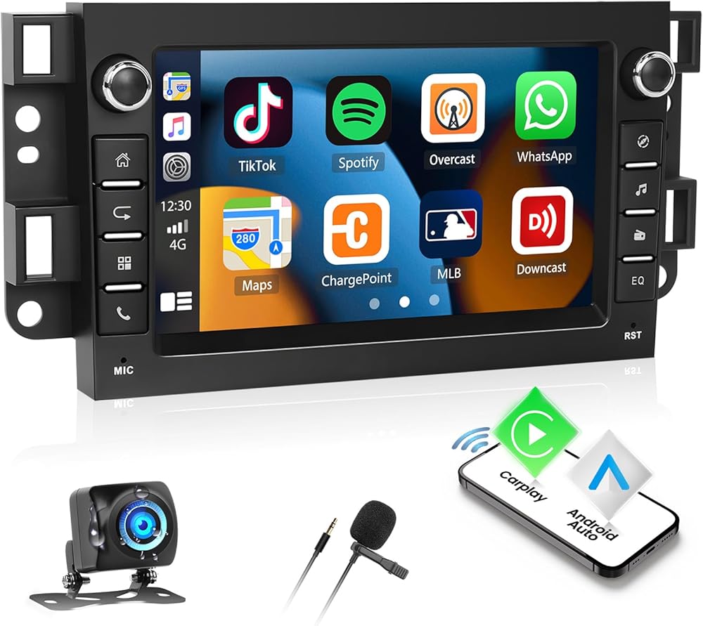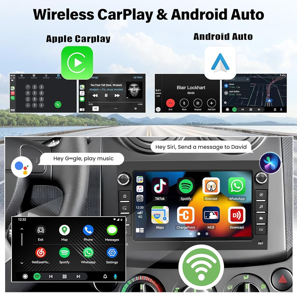 【CarPlay اللاسلكي وAndroid Auto السلكي، رابط المرآة】 لاستيريو السيارة المتوافق مع Apple CarPlay، التحكم الصوتي Android Auto، يدعم CarPlay/Android Auto اللاسلكي والسلكي. متصل بهاتفك، يمكن أن يكون استريو السيارة هذا مساعدًا صوتيًا ذكيًا، ويمكنك الحصول على الاتجاهات وإجراء المكالمات وإرسال واستقبال الرسائل والاستمتاع بالموسيقى وما إلى ذلك. رابط مرآة لهواتف Android/ iOS لمزامنة تطبيق الهواتف والتشغيل على هذا شاشة لمس 7 بوصة، مريحة لعرض الخريطة أو الفيديو