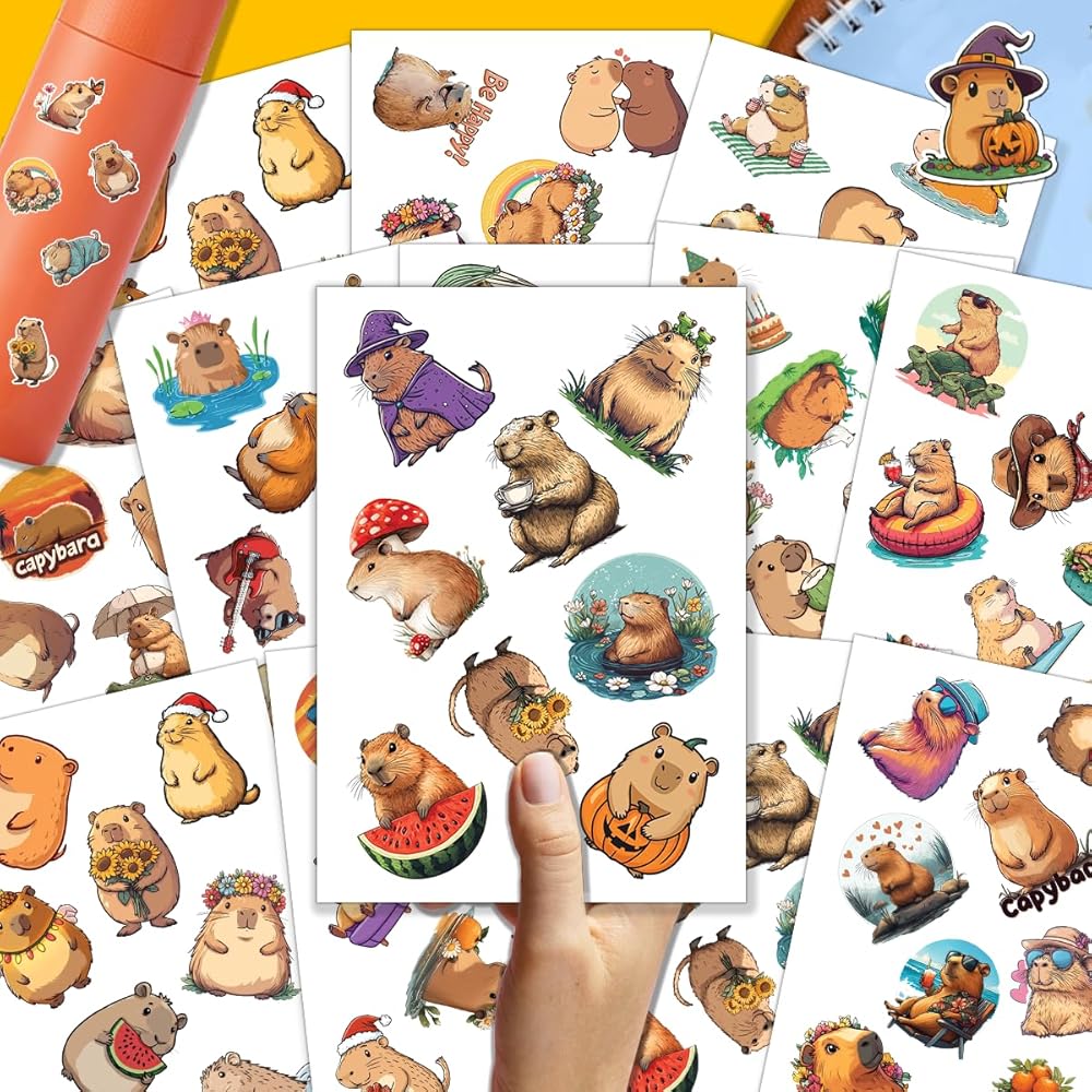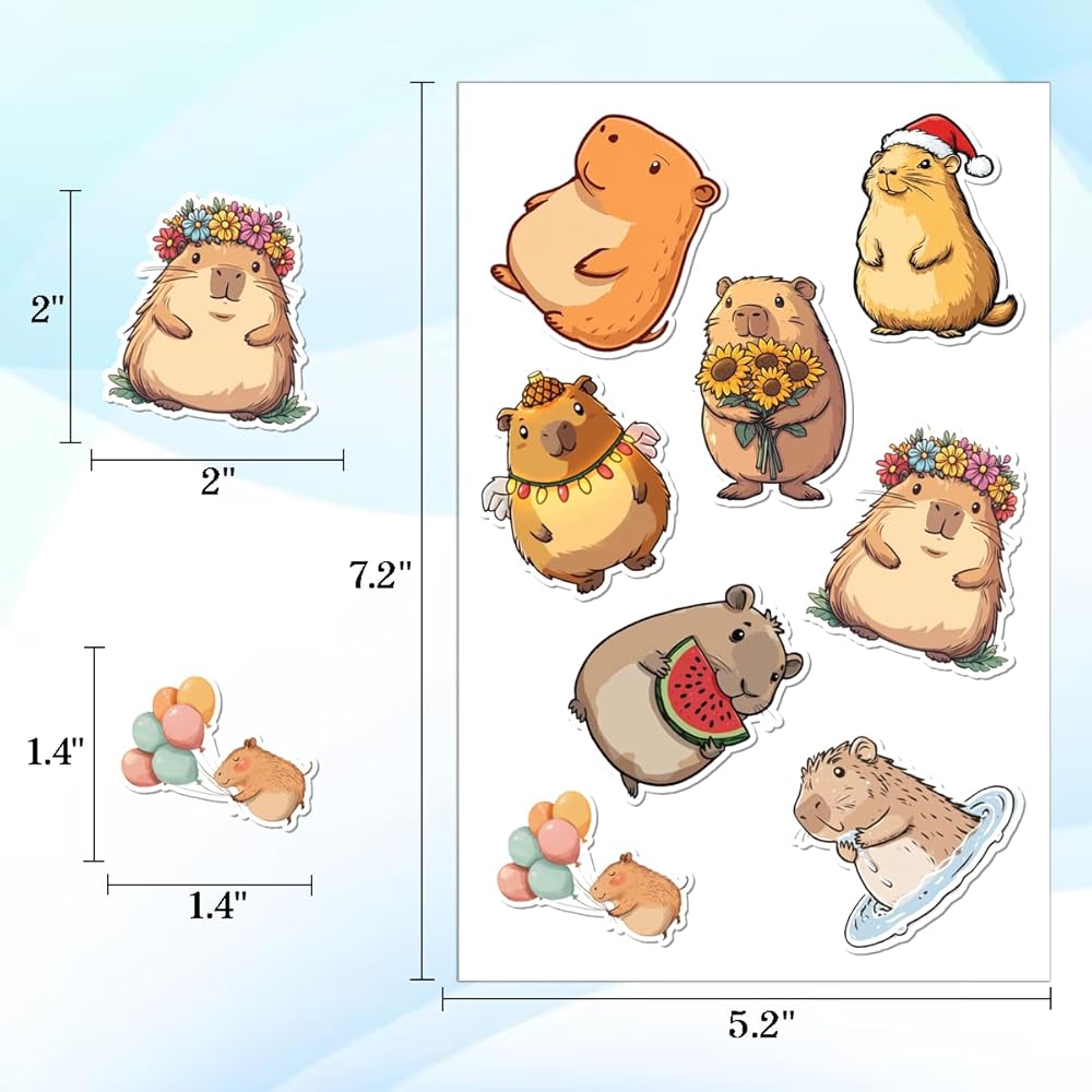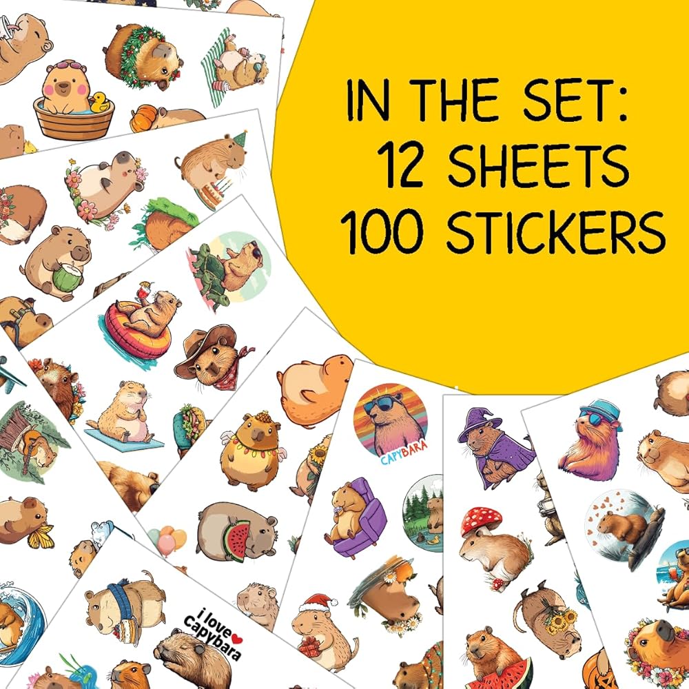 PACKAGE INCLUDES: The package includes 12 sheets, each with 100 PCS and measures 7,2 x 5.1 inches, as well as a full set of Capybara Stickers. This amazing ornament assortment is sure to exceed your expectations.