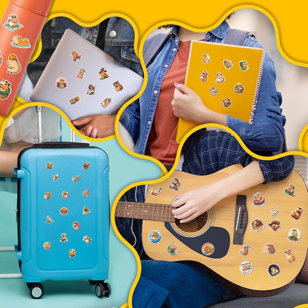 100 قطعة من ملصقات Capybara المقاومة للماء لزجاجات المياه والكمبيوتر المحمول وأمتعة الكمبيوتر وسجلات القصاصات والمراهقين والبالغين والبنات والأطفال وديكورات حفلات أعياد الميلاد المضحكة