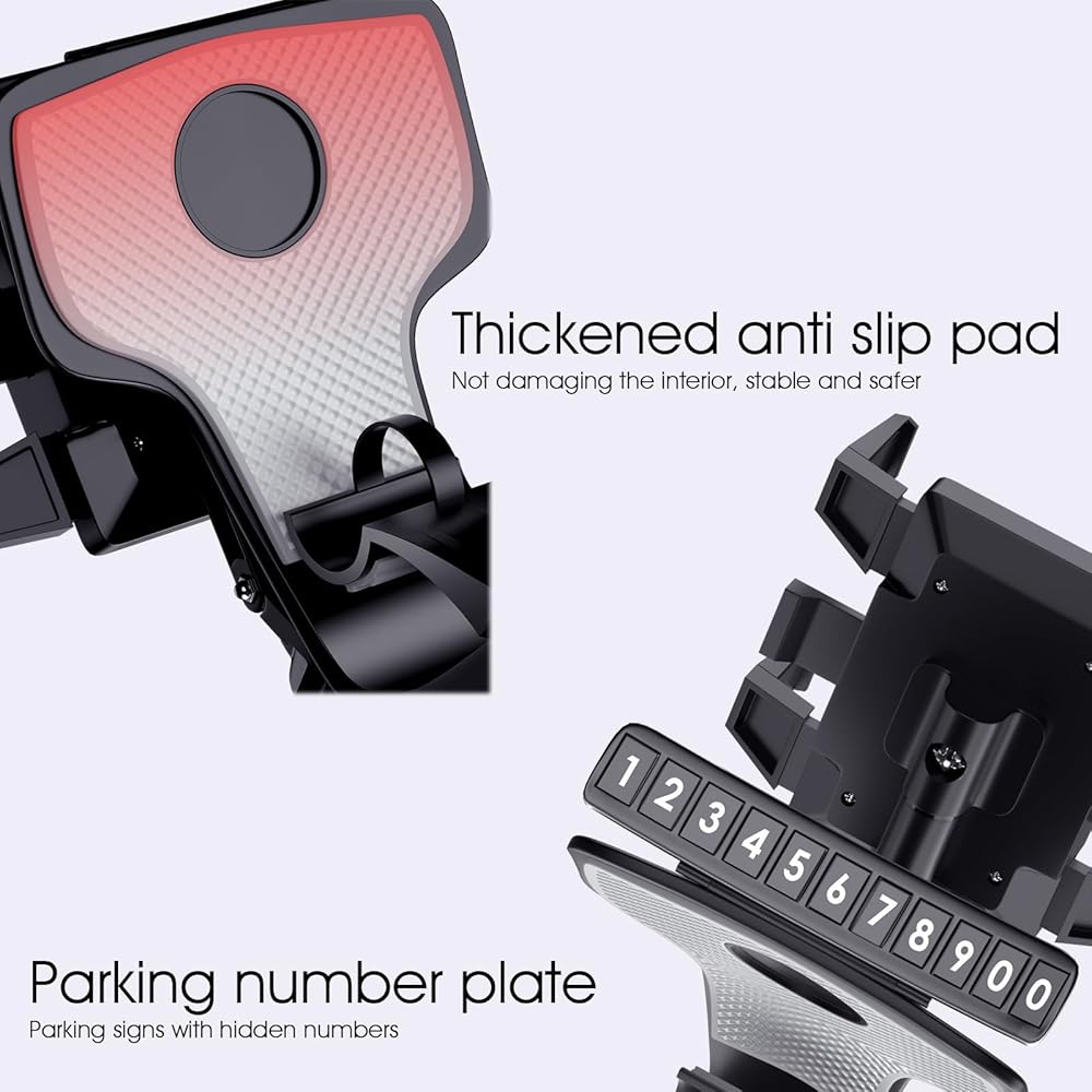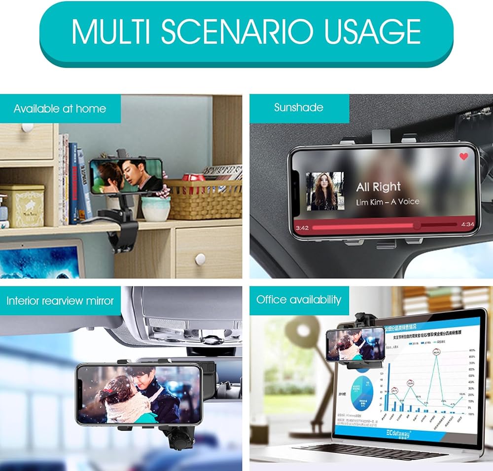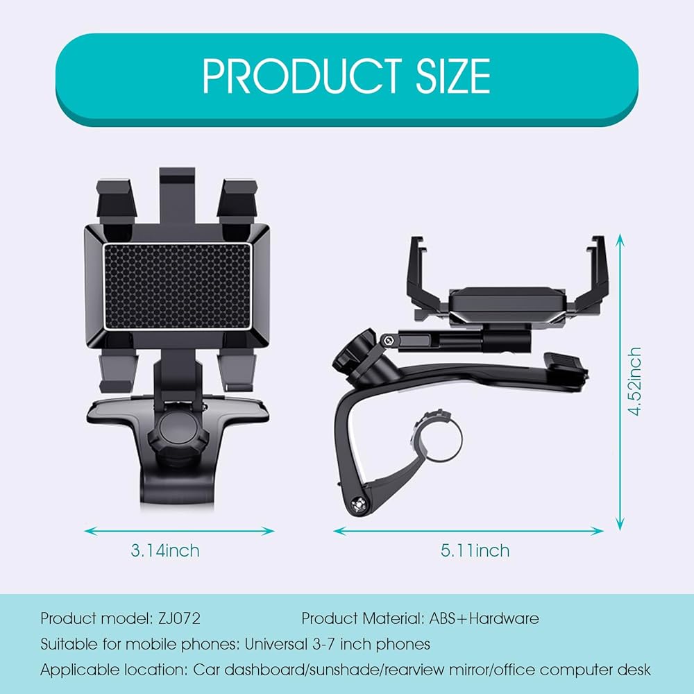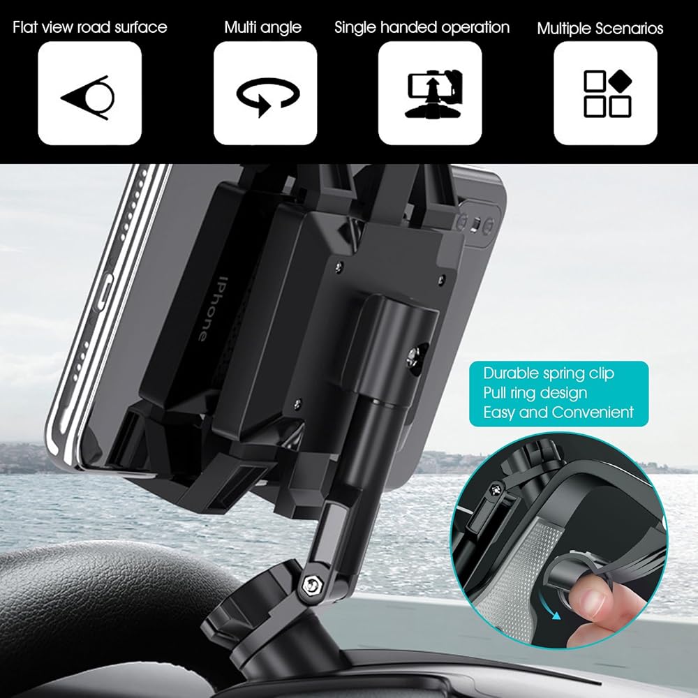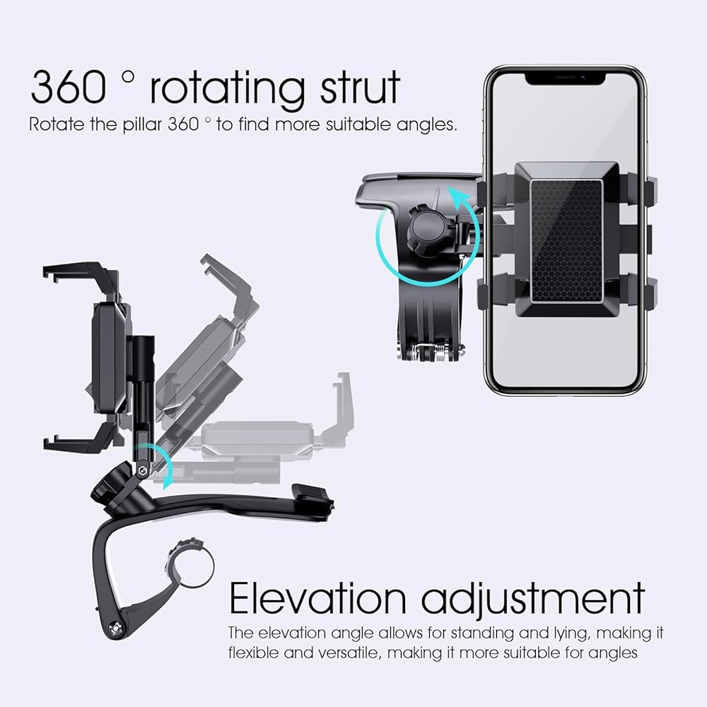 High Quality: The car phone holder is made of high-quality ABS and hardware material, which is durable, waterproofed, environmental and safe. It can be used for rearviews, dashboards and sun visors, which is multifunctional and practical.