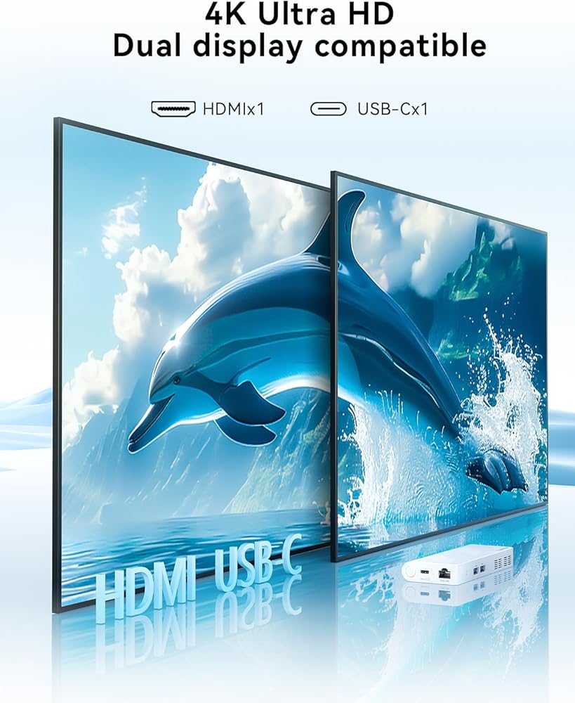 • 【دعم شاشات 4K مزدوجة: يمكن لمنفذ HDMI 2.0 1x (4K@60hz) ومنفذ USB-C 1x (4K@60hz) الإخراج في وقت واحد إلى شاشتين. توفر الشاشات المزدوجة مساحة عمل أكبر، مما يسمح لك بعرض العديد من التطبيقات والمستندات في وقت واحد، وبالتالي زيادة كفاءة العمل.