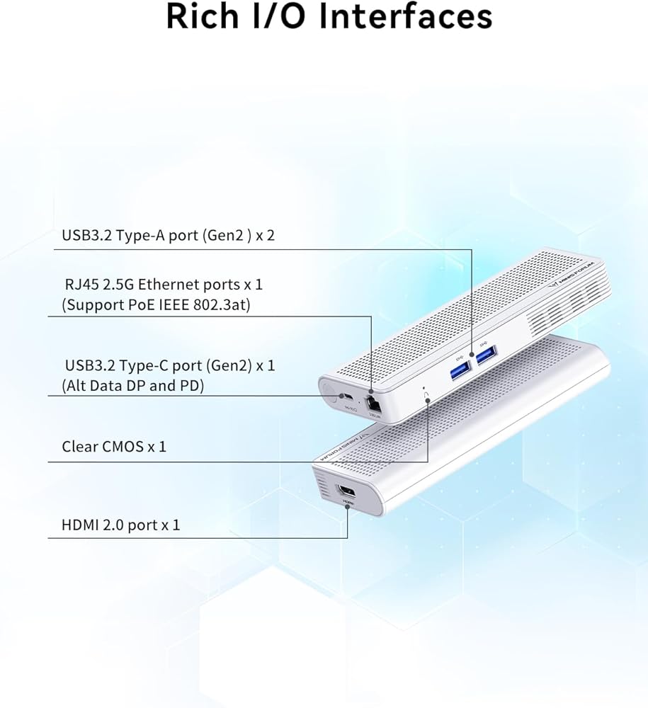 • 【يدعم منفذ 2.5G RJ45 PoE】 يدعم منفذ الشبكة S100 RJ45 2.5G تقنية الطاقة عبر الإيثرنت (POE)، مما يتيح إمداد الكمبيوتر بالطاقة من خلال منفذ الشبكة هذا. تسمح تقنية POE بدمج نقل الطاقة والبيانات على كابل واحد، مما يلغي الحاجة إلى خطوط طاقة إضافية وتبسيط أعمال التركيب.