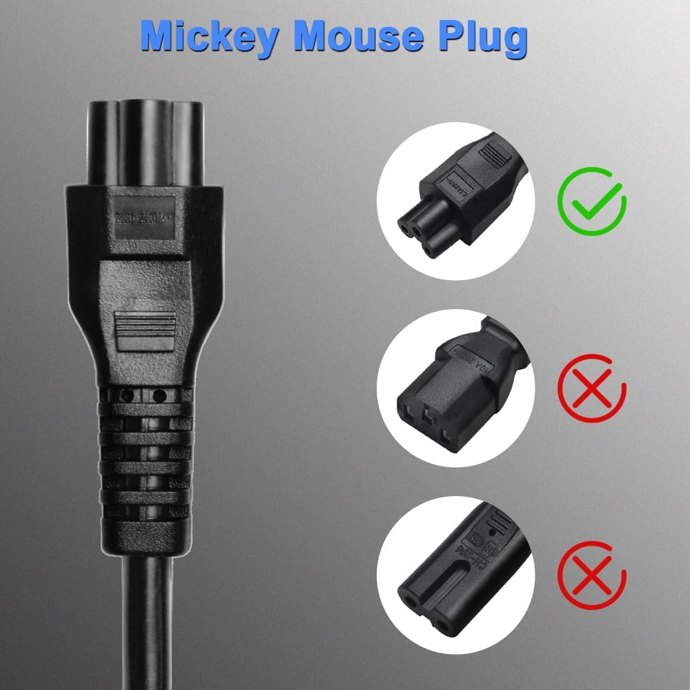 • High Quality & Application: GuuYebe AC Power Cord Mickey Mouse Universal Plug is made from high quality 100% copper wire. Easy to use. Being more endurable, More safe and longer service life. GuuYebe AC Power Supply Cord is compatible with TV Computer Monitor Laptop Hoverboard Charger Notebook Printer appliances.Ccompatible for MAX G2/G30/G30P/P100S/P65 Charger