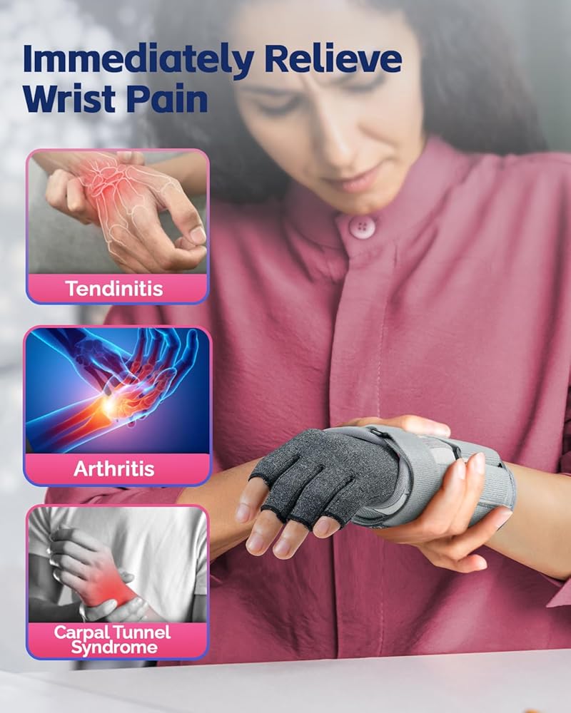 قفازات التهاب المفاصل الاصطناعي مع دعامة الرسغ ، قفازات نفق الرسغي المريحة بدون إصبعية للنساء للنساء الليلي ، وتخفيف الألم لالتهاب المفاصل الروماتويدي ، والعمل ، والكتابة - اليد اليسرى ، صغيرة