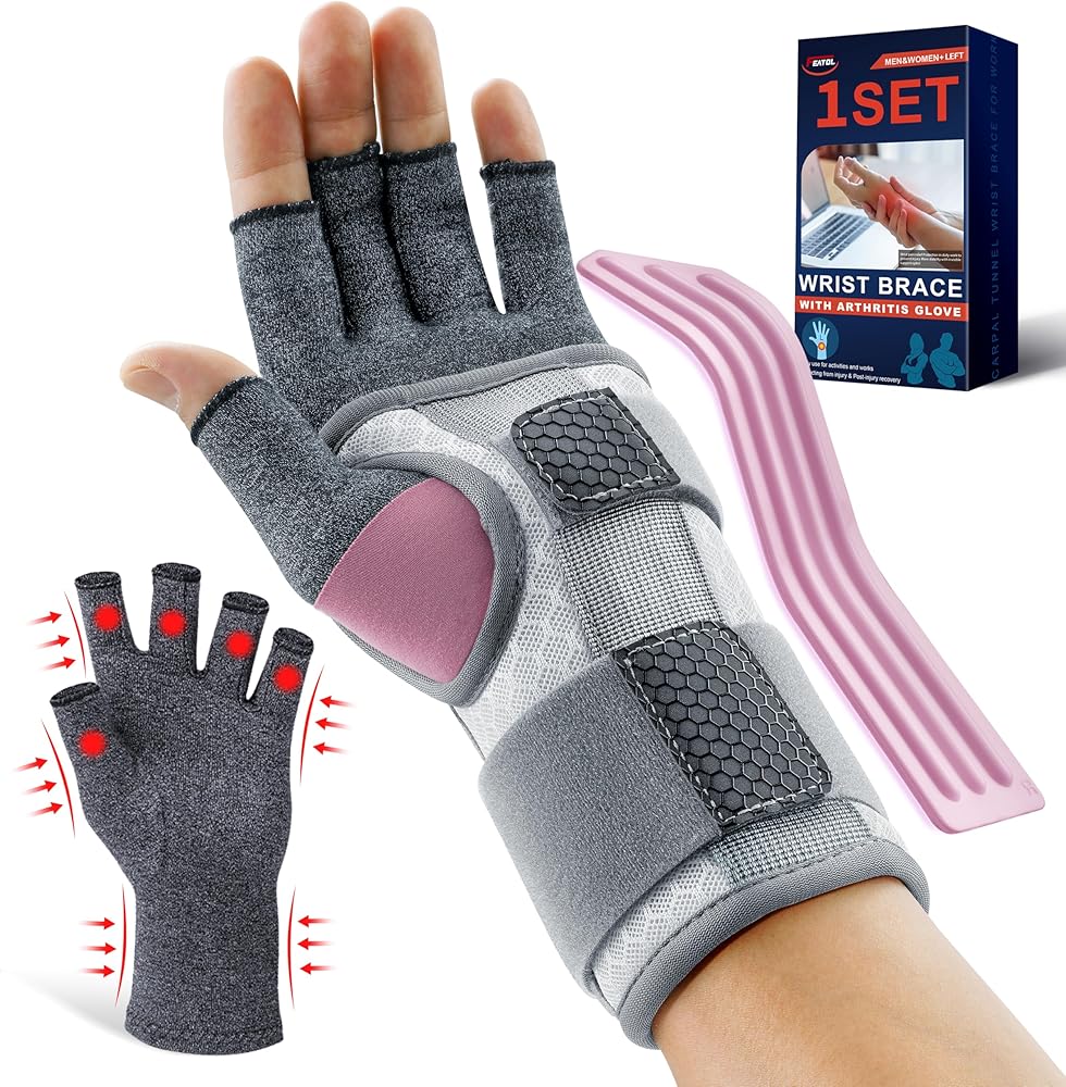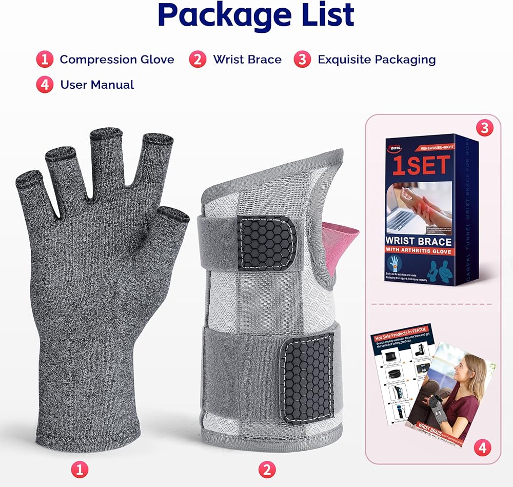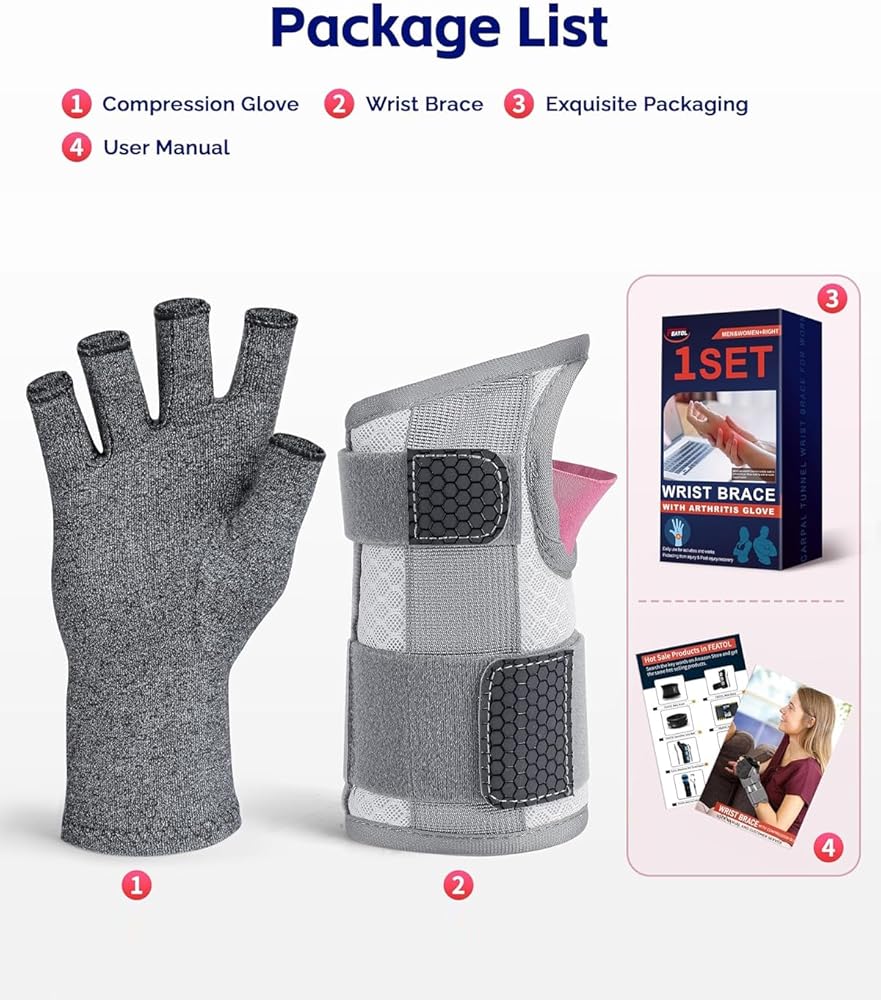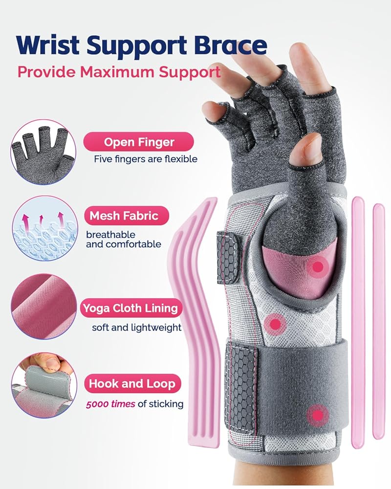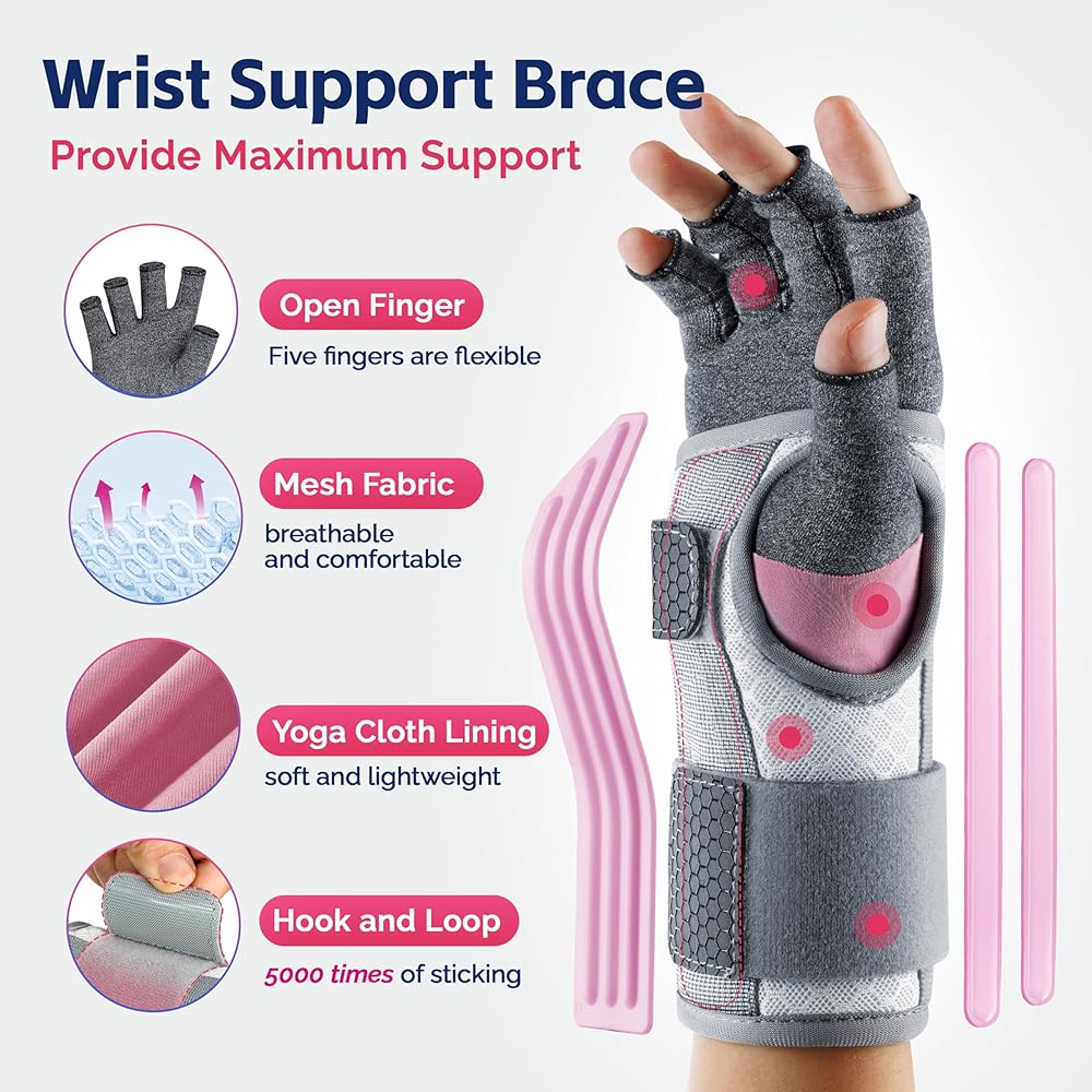 • [مجموعة دعامات للنساء] تحتوي هذه المجموعة على دعامة معصم واحدة وقفاز ضغط واحد. مصمم لمساعدتك على تخفيف الألم والحفاظ على راحتك طوال النهار وطوال الليل. مناسب للأشخاص الذين يعانون من متلازمة النفق الرسغي، والحمل، والتهاب المفاصل، والتهاب الأوتار، وتواءات المعصم، والإجهاد، وما إلى ذلك.