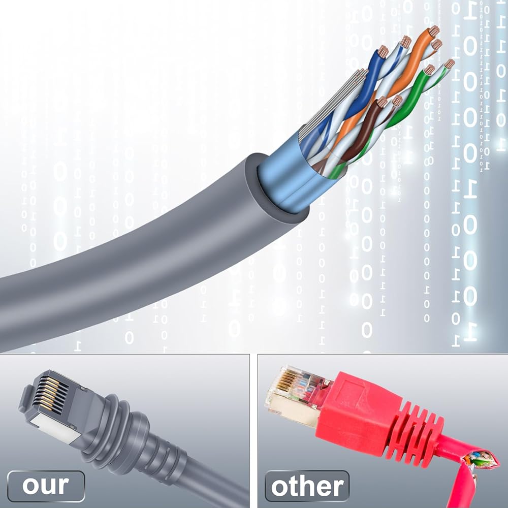 • سرعة فائقة: مصنوع من كابل Cat5e سلكي 24 AWG عالي الجودة، يوفر هذا الكابل نقل بيانات بسرعة البرق، ويوفر نقل البيانات بسرعة 1000 ميجابت في الثانية البث دون تأخير.
