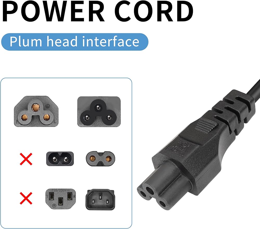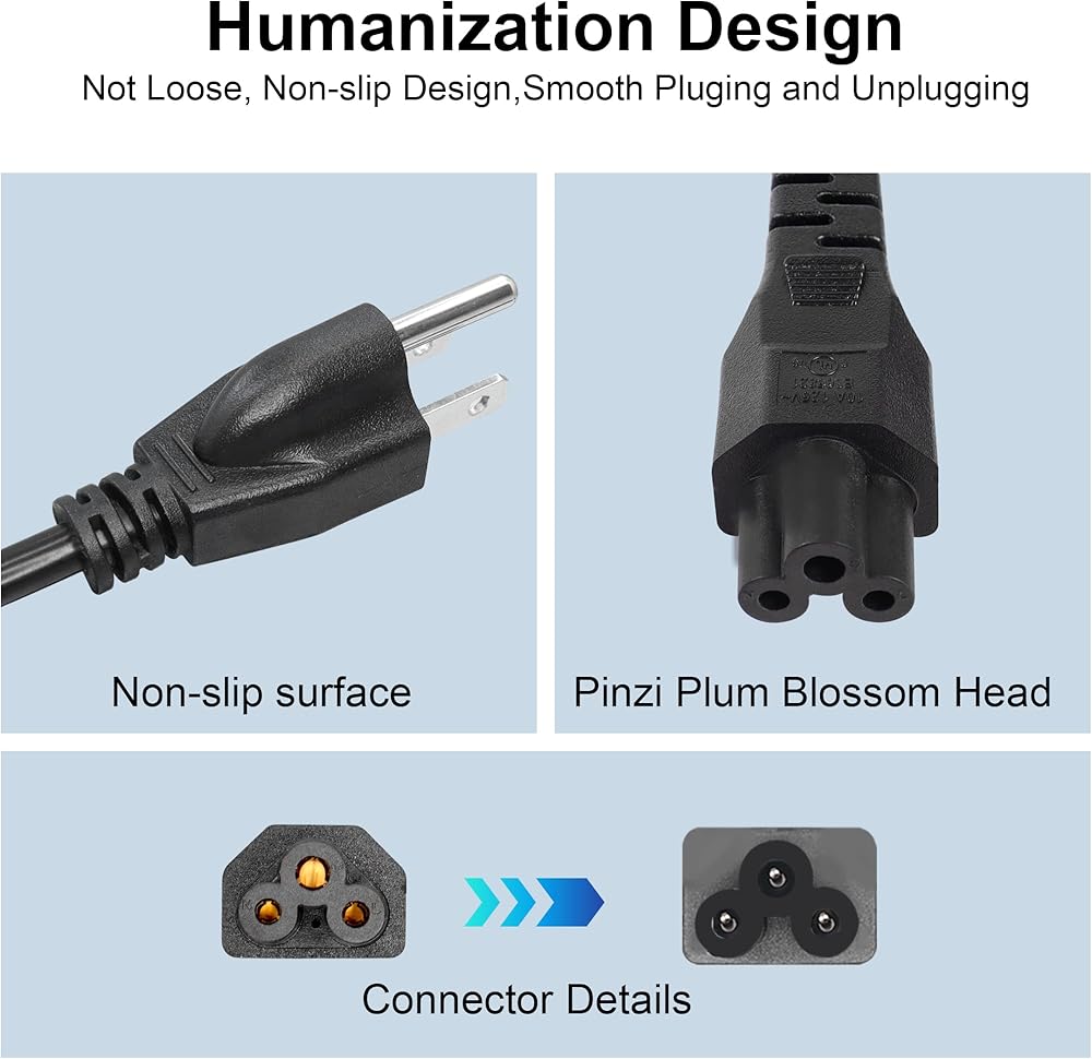 【Sturdy Design】UL listed (UL62 & UL817) | Fully molded strain relief C5 connector for durability | Fire Rating: VW-1 | 3 Conductor Notebook Power Cable made with 100% Copper Wire