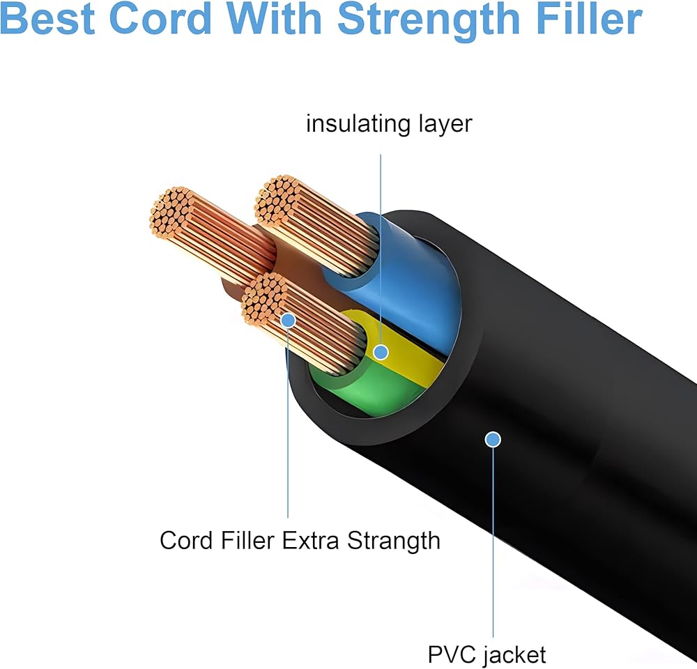 【Security】This heavy-duty shielded 18 AWG Power Cord features a molded design for maximum durability and long life. Flexible nylon braided cable body, the power cord is durable and strong for daily use. It's made of high-quality material, pure copper, and environmental PVC. The 3 pin power cord provides long-lasting electric power and heat-resistant.