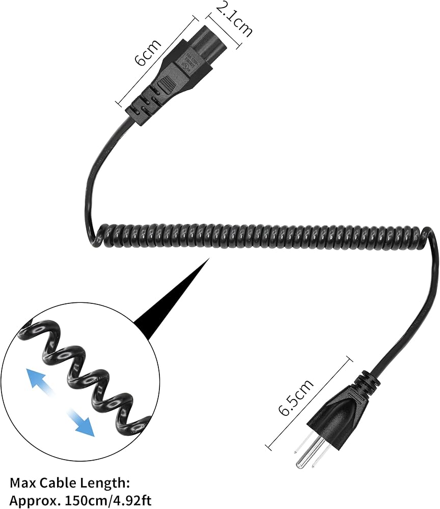 【Features】YACSEJAO Coiled 3 Prong AC Power cords can be stretched to 6FT, 18AWG(0.824mm²) Cable Can fit all 3 Prong Laptop AC adapters. As long as the power port is the same, then you can use this cable to replace the old one.