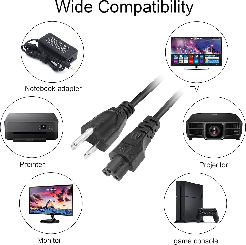 【Compatibility】AC Power Cord NEMA 5-15P works with North American outlets | IEC C5 connector works with most power bricks for laptops/notebooks, monitors, scanners, printers, and more | Replacement laptop power supply cable/cord