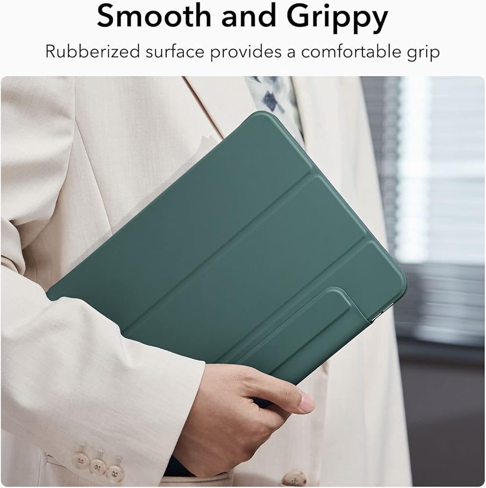 حامل ثنائي الاتجاه: غطاء مغناطيسي ثلاثي الطي يمكن طيه بسهولة في حامل ثابت للعرض أو الكتابة لضمان زاوية مريحة لمتابعة برامجك المفضلة أو تدوين الملاحظات باستخدام قلم الرصاص الخاص بك