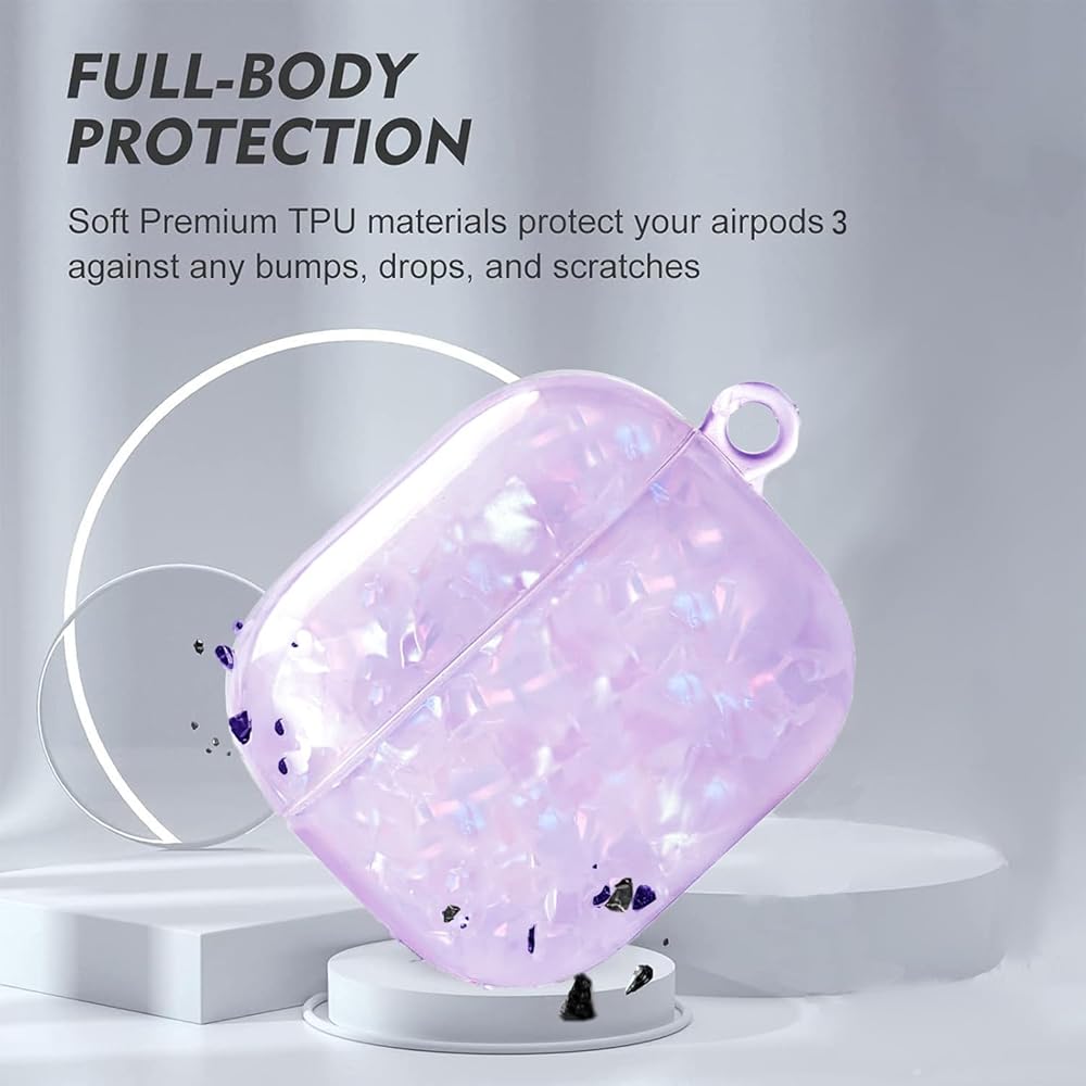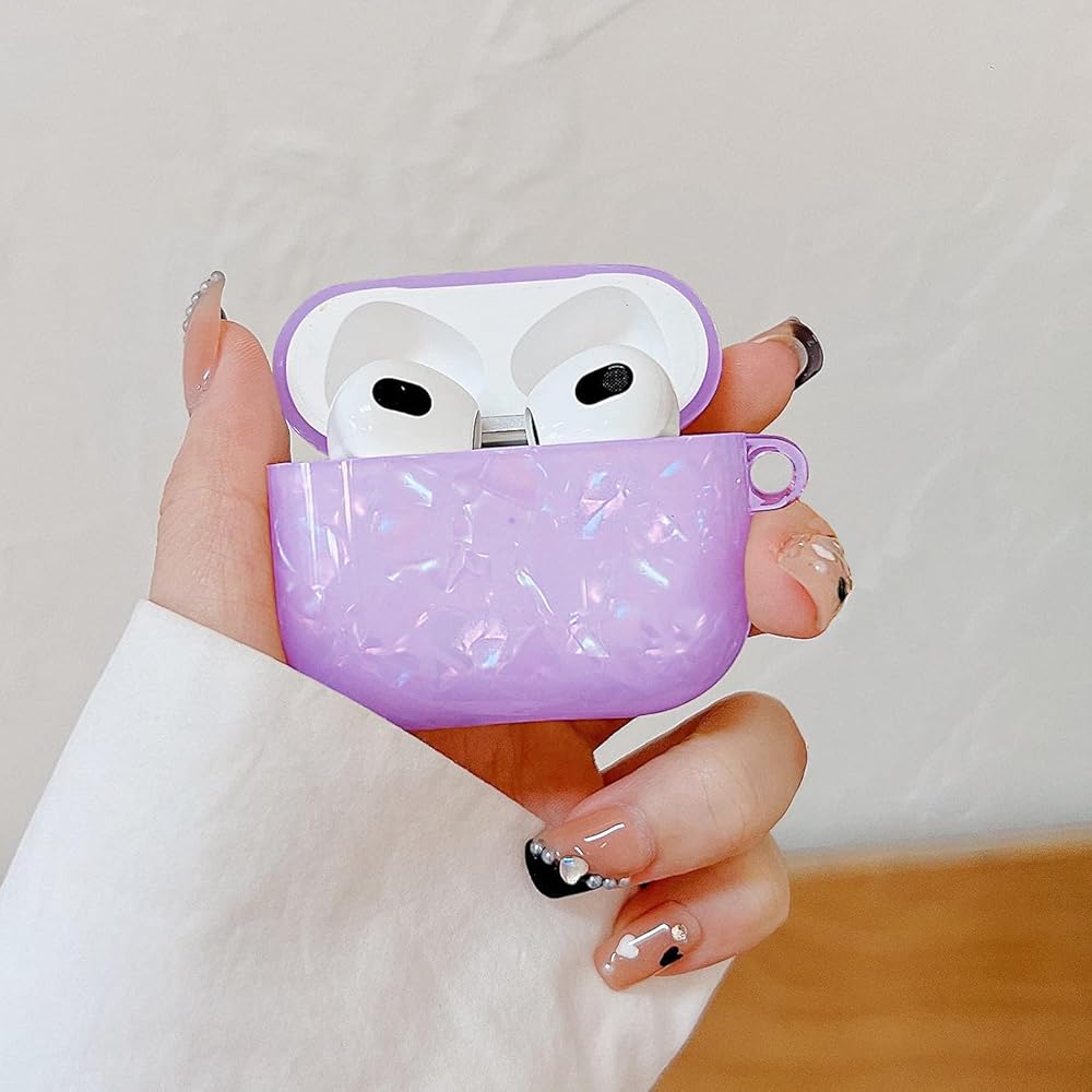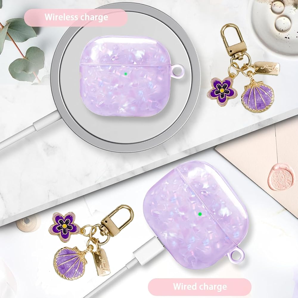【تصميم فريد من نوعه】جراب بتصميم صدفة لؤلؤية رخامية فاخرة لامعة مع سلسلة مفاتيح زهرية، مما يجعل حافظة Airpods 4 الخاصة بك أكثر جاذبية وجمالاً وعصرية وساحرة.