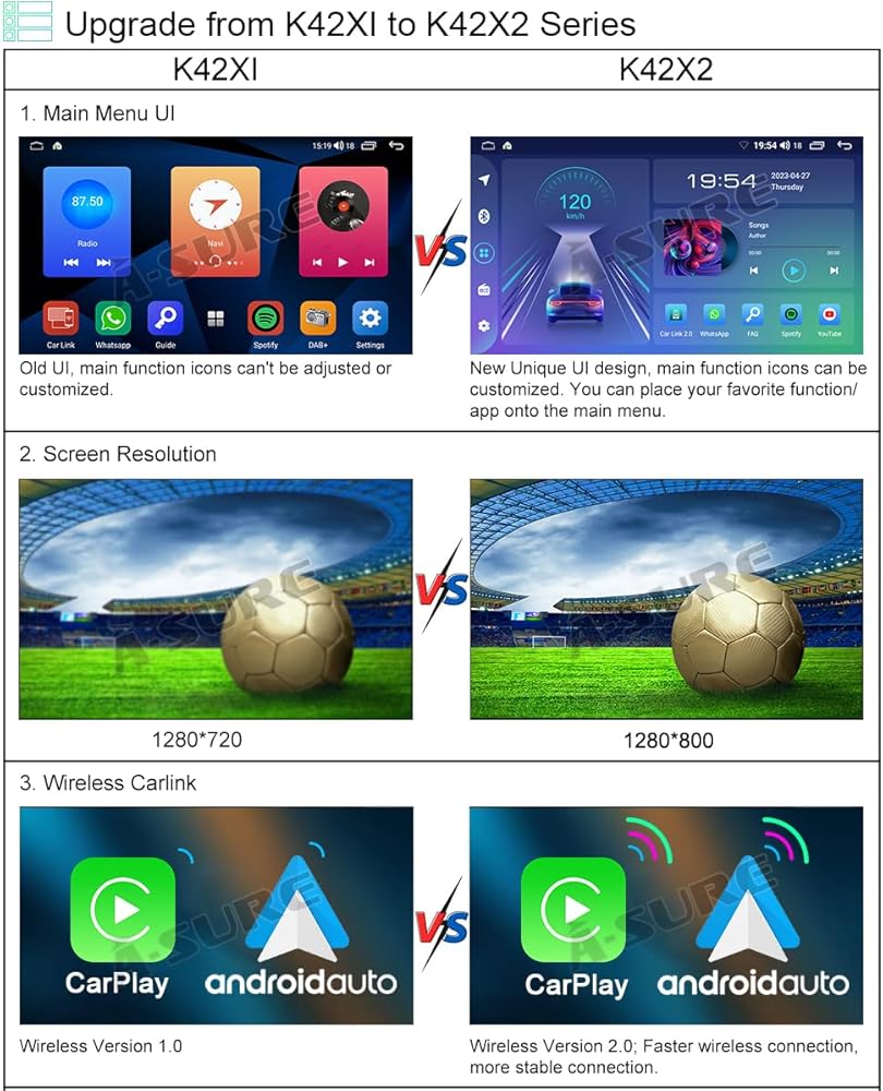 • ترقية راديو السيارة: نظام أندرويد مخصص، مع معالج 8 النواة 1.6 جيجا هرتز، ذاكرة الوصول العشوائي 4 جيجابايت + ذاكرة الوصول العشوائي 64 جيجابايت، يضمن التشغيل السلس والاستجابة الأسرع، مساحة تخزين كبيرة 64 جيجابايت مع وظيفة واي فاي تسمح بتثبيت المزيد من التطبيقات، شاشة لمس عالية الدقة 1280*720 من الجيل الثالث IPS عرض، لون أكثر ثراءً وعرضًا أكثر وضوحًا، دقة عرض الشاشة 1280 × 720، دقة إخراج الفيديو 1024 × 600 (للشاشة الخارجية)