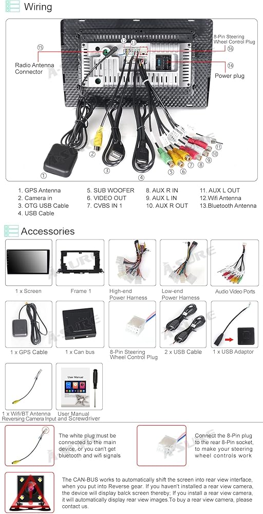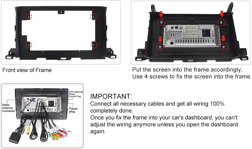 • التحكم في عجلة القيادة: حزام سلكي للتوصيل والتشغيل، سهل التركيب (يتطلب عدد قليل من كابلات swc أسلاك يدوية، اتصل بنا إذا لم يعمل swc)، برنامج زر التحكم الأصلي في عجلة القيادة المدعوم للسيارة وتخصيصه (انقر فوق الإعدادات في القائمة الرئيسية، انتقل إلى المصنع وأدخل كلمة المرور 8888، ثم اختر Raise->Toyota->Highlander->15-17(Low))