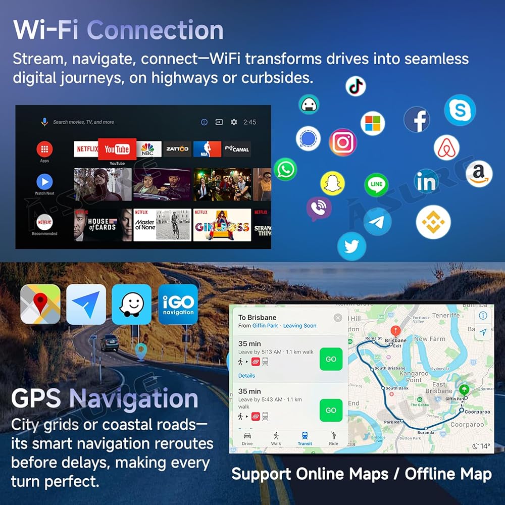 • CarPlay السلكي واللاسلكي وAndroid auto: متصل لاسلكيًا بالبلوتوث، انقر فوق أيقونة Car-Link لبدء وظيفة CarPlay أو Android Auto أو العودة إلى الصفحة الرئيسية (متوافق مع iPhone 5 والإصدارات الأحدث، وهاتف Android 11.0 والإصدارات الأحدث)، سلكي متصل بـ 6 كابل USB دبوس، مريح جدًا في التشغيل، حرر يديك، استخدم بسهولة نظام تحديد المواقع العالمي (GPS)، والمكالمات، والرسائل، والموسيقى والمزيد من الوظائف مع التركيز على السلامة على الطريق