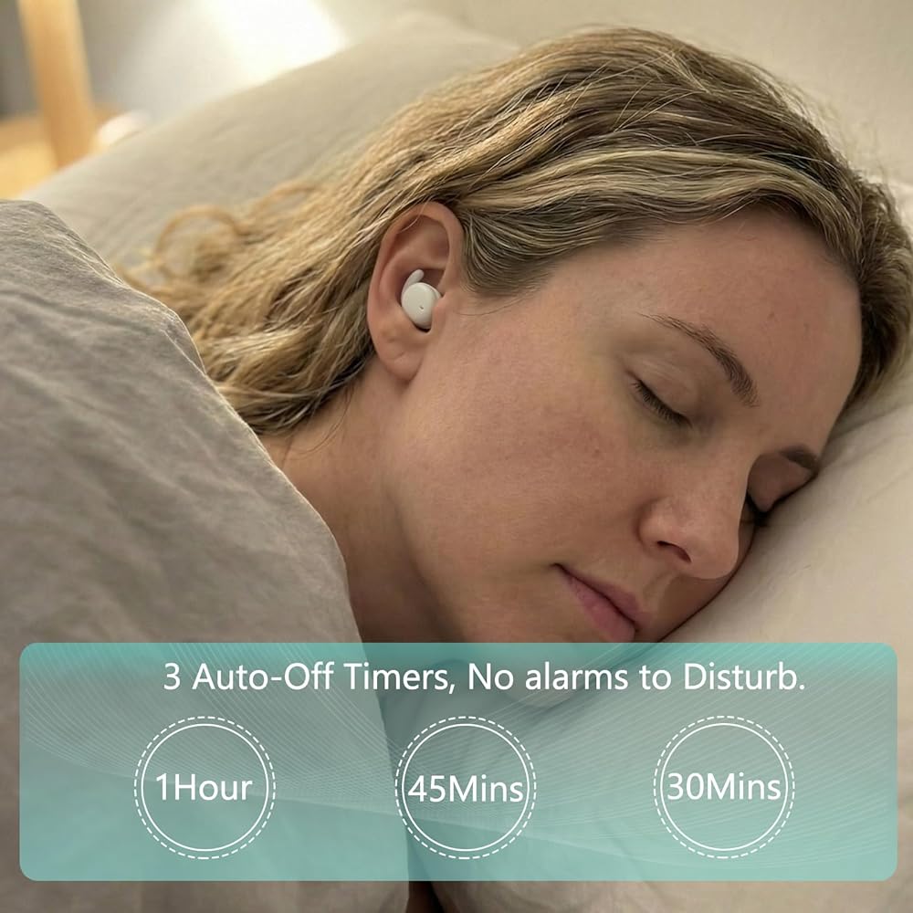 وقت تشغيل لمدة 6 ساعات: بطارية طويلة الأمد لمرافقتك طوال الليل. سيكون لديك أصوات هادئة أو موسيقاك المفضلة دون القلق بشأن إعادة الشحن. علاوة على ذلك، لن تقطع أي منبهات منخفضة البطارية نومك، مما يوفر تجربة هادئة تمامًا.