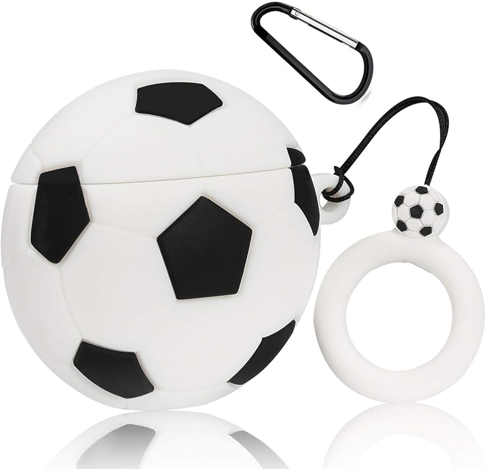 Mulafnxal متوافق مع Airpods 1&2 Case، سيليكون ثلاثي الأبعاد لطيف وممتع لشخصية كرتونية لتغطية Airpod، جلد بتصميم رياضي رائع وأنيق، حافظات للرجال والمراهقين والبنات والأولاد Air pods (كرة القدم)