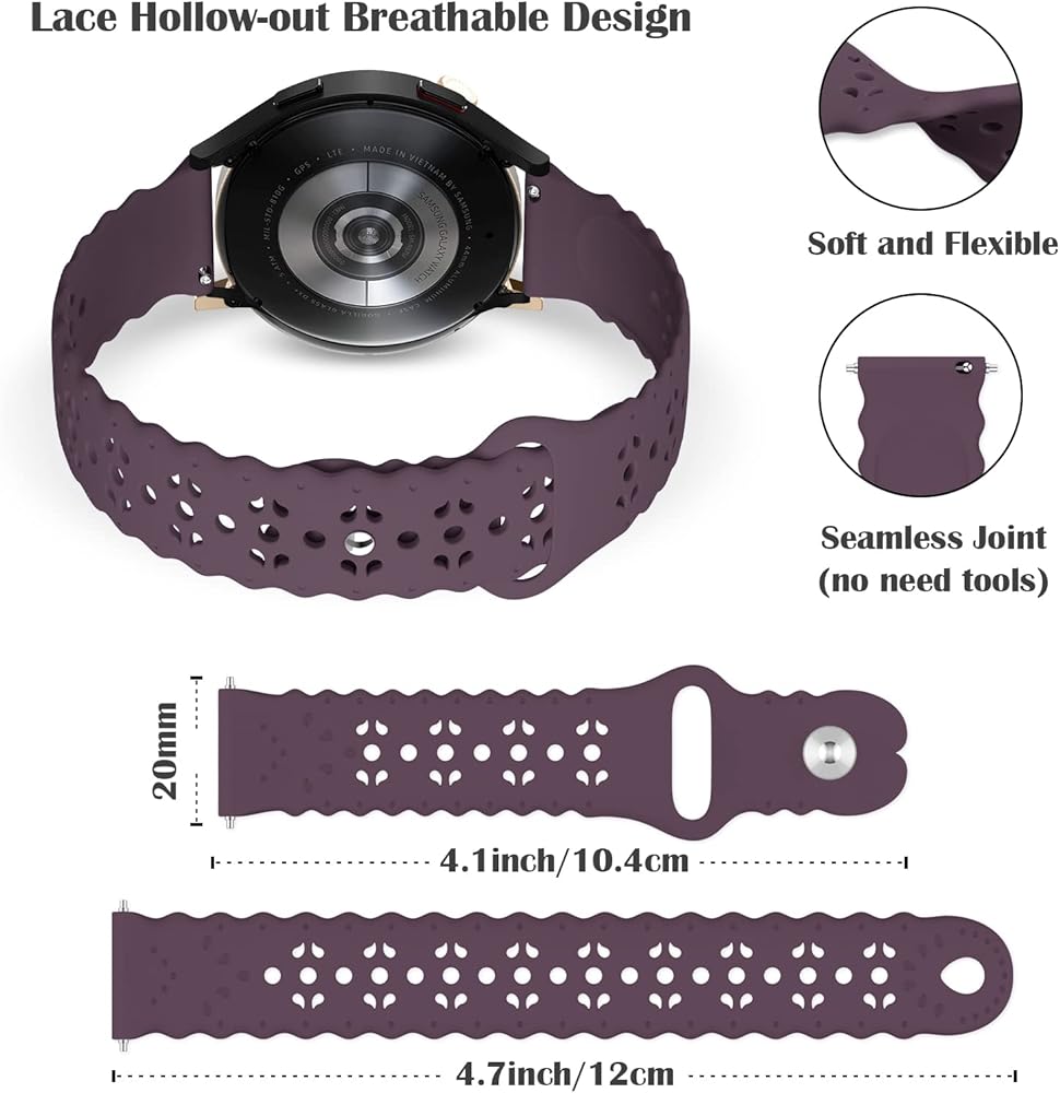 【متوافق مع جميع أحزمة الساعة بعرض 20 مم】سوار سيليكون دانتيل AIZHINENG 20 مم متوافق مع ساعة Samsung Galaxy Watch 4 40 مم 44 مم، Galaxy Watch 4، Classic 42 مم 46 مم، Galaxy Watch 3 41 مم، Galaxy Watch 42 مم، Samsung Watch Active 40 مم/Active 2 40 مم 42 مم. جير سبورت، جير S2 كلاسيك. وأي ساعة ذكية أخرى بعرض 20 مم، Garmin Vivomove / Vivomove HR / Vivoactive 3 / Forerunner 645 / 245، Suunto 3 Fitness، Huawei Watch GT 42mm، Moto 360 2nd Gen 42mm، Ticwatch E، gizmo watch 2 Pro إلخ.