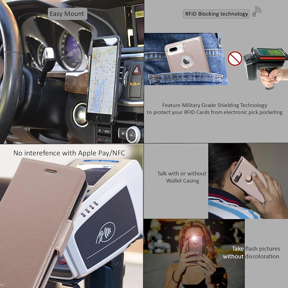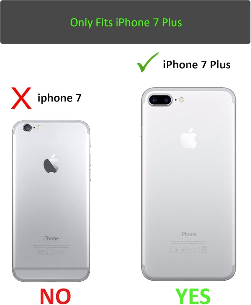 IMPORTANT: The case is not compatible for wireless charging. DESIGNED FOR APPLE iPhone 7 Plus : Precise cut-outs give you full access to all ports. Magnetic Tab Closure., Card Pockets, Money Pocket, Clear Window ID Pocket