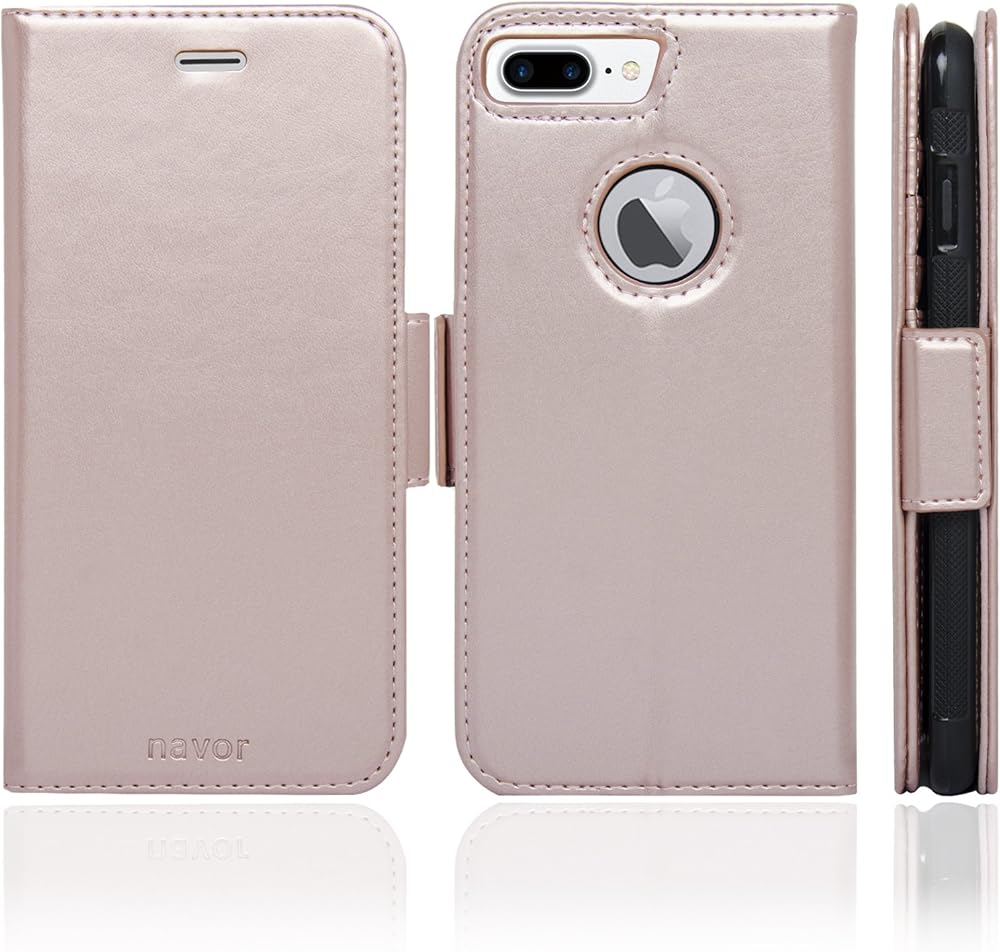 Navor Detachable Magnetic Wallet Case RFID Protection, Logo Hole, Compatible for iPhone 7 Plus [Vajio Series] Brown (IP7PVJBR)