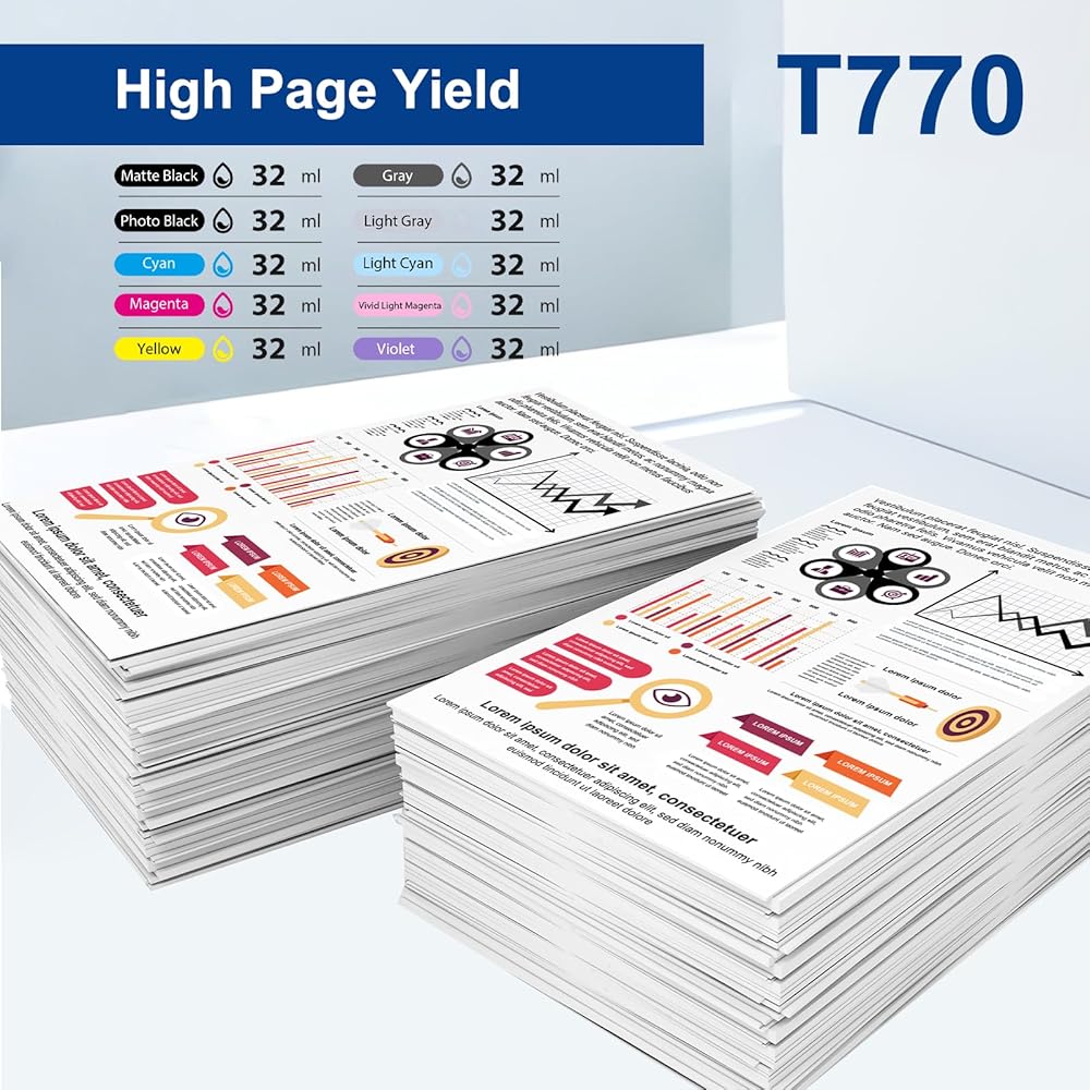 - [محتوى العبوة]: مجموعة خراطيش حبر Verveoy 10 عبوات 770 T770 بديلة لمجموعة الحبر T770020 T770120 T770220 T770320 T770420 T770520 T770620 T770720 T770820 T770920