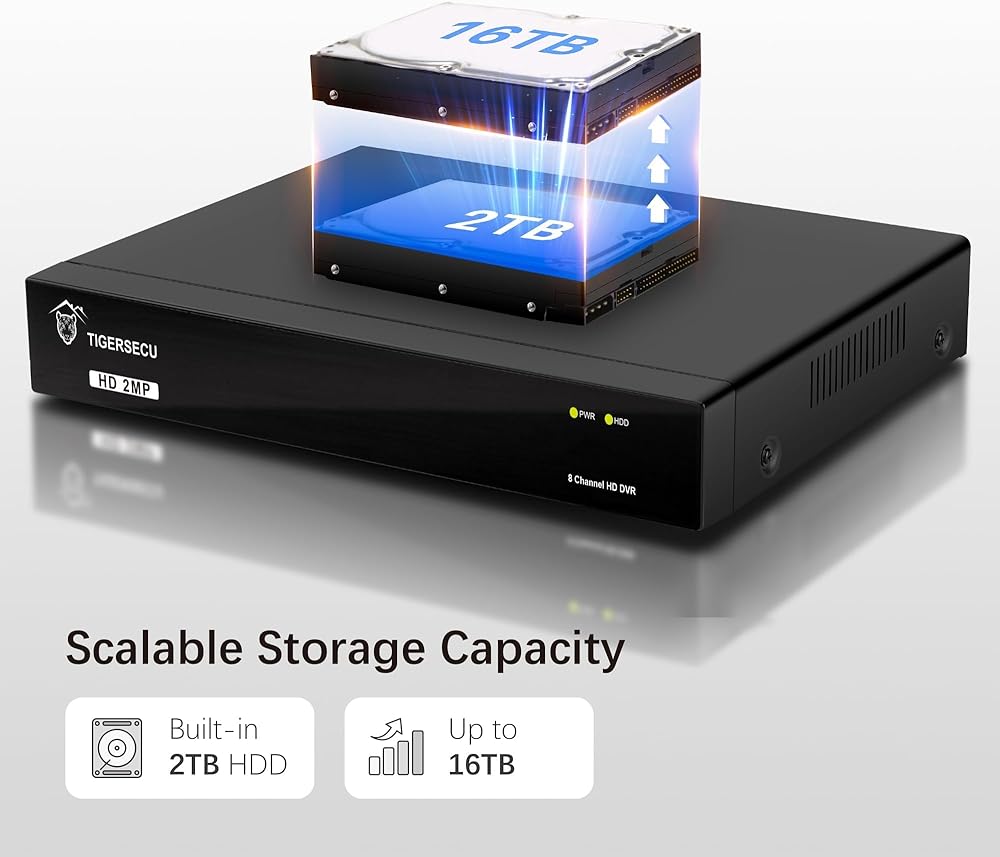 TIGERSECU's Super HD Hybrid Security DVR هو نظام تسجيل فيديو رقمي هجين كامل الميزات مصمم للاستخدام مع 2MP (1080p) HD TVI وAHD وCVI وكاميرات الأمان التناظرية. للحصول على الأداء الأمثل، استخدم مسجل الفيديو الرقمي TIGERSECU مع كاميرات الأمان TIGERSECU.