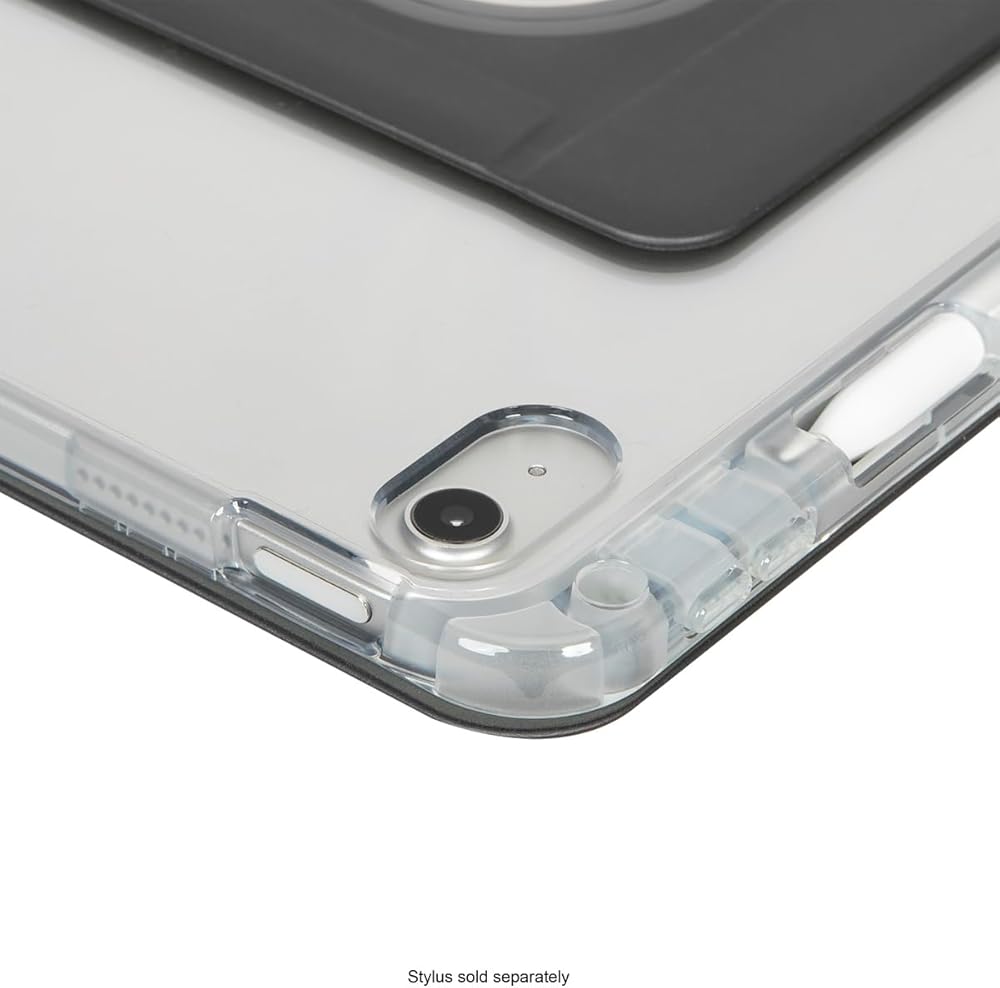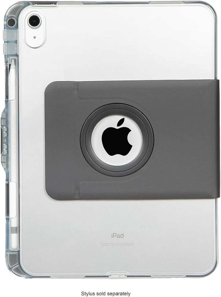Complement your colorful new iPad with the Targus VersaVu Clear Case for iPad (10th gen.) 10.9-inch – a case designed for protection and versatile viewing. Featuring a shock-absorbent tray with wrap-around bezel and reinforced corners, plus a protective folio cover to safeguard the screen, the case delivers military-grade drop protection (up to 4 feet/1.2 meters) in its sleek design. The VersaVu's patented 360-degree rotation creates virtually any positioning option and transitions smoothly between portrait and landscape to customize your view. Deep grooves anchor the edge to ensure stability, and precision cutouts give you easy access to all your buttons, ports, and camera lenses. Enjoy added ease and convenience with the integrated holder for your Apple Pencil, keeping it ready to go or your stylus close at hand (Pencil sold separately by Apple). And thanks to its structural design, this case also has audio-boosting scoops, so you'll have premium sound whether you're taking a call, in a meeting, or streaming your favorite program.