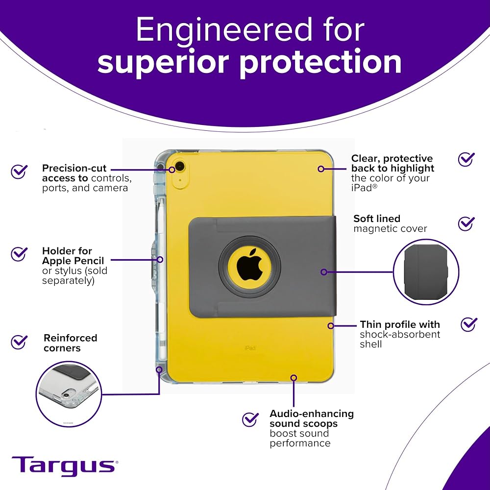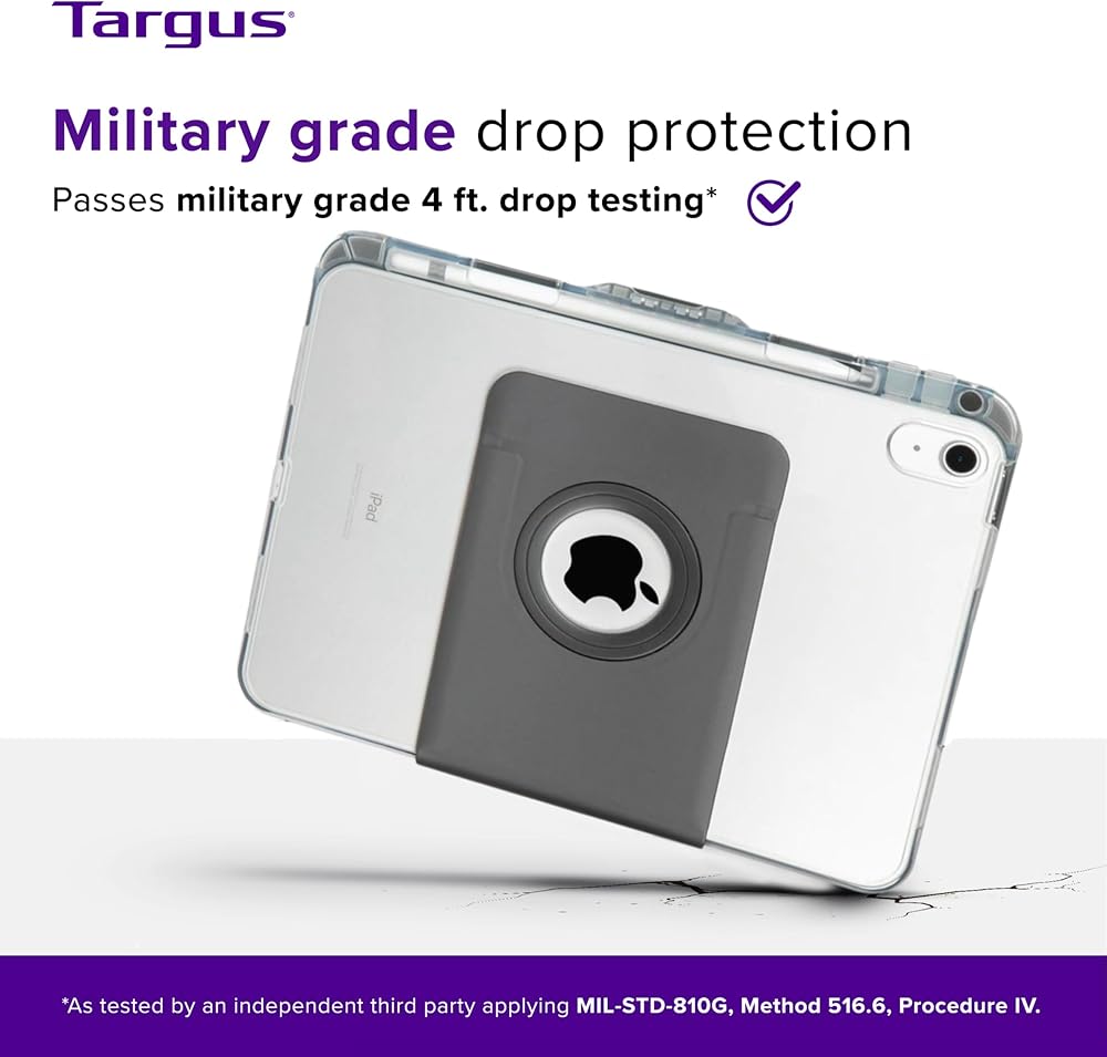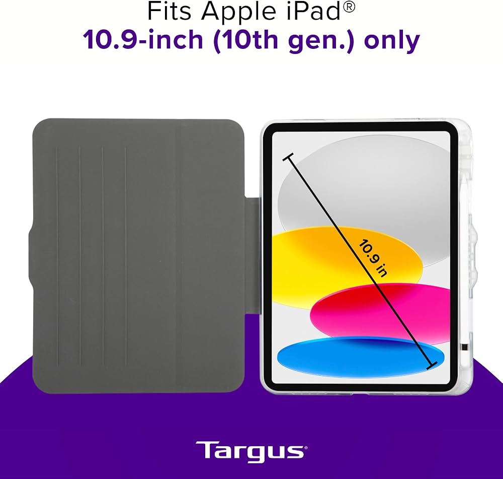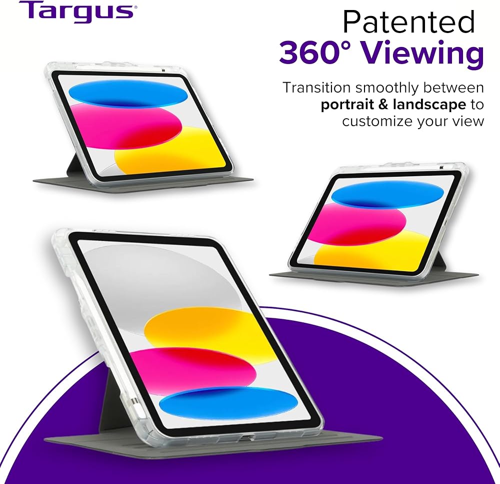 حافظة Targus VersaVu الشفافة لجهاز iPad مقاس 10.9 بوصات (الجيل العاشر)، شفافة - حافظة حماية من الدرجة العسكرية مع إمكانية عرض الصور والمناظر الطبيعية بدون استخدام اليدين (THD936GL)