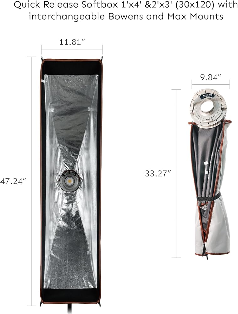 فعال وموثوق: تم تصميم صندوق Softbox المستطيل سريع الإصدار Harlowe مقاس 1 × 4 بوصة (30 × 120) مع وضع الكفاءة والتنوع في الاعتبار. تضمن ميزة الإصدار السريع المبتكرة الإعداد والإزالة بسرعة، حتى تتمكن من الاستمرار في التركيز على عمليتك الإبداعية.