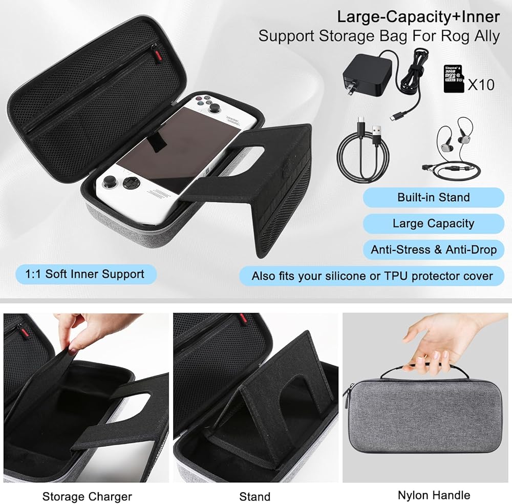 【تصميم عملي】حماية فائقة: مصنوعة من مادة EVA السميكة المطورة، توفر هذه الحافظة الواقية حماية قصوى لجهاز الألعاب ASUS ROG Ally مقاس 7 بوصة، مع دعامة لدعم مريح وبطانة صوف مقاومة للخدش لمنع الخدوش.