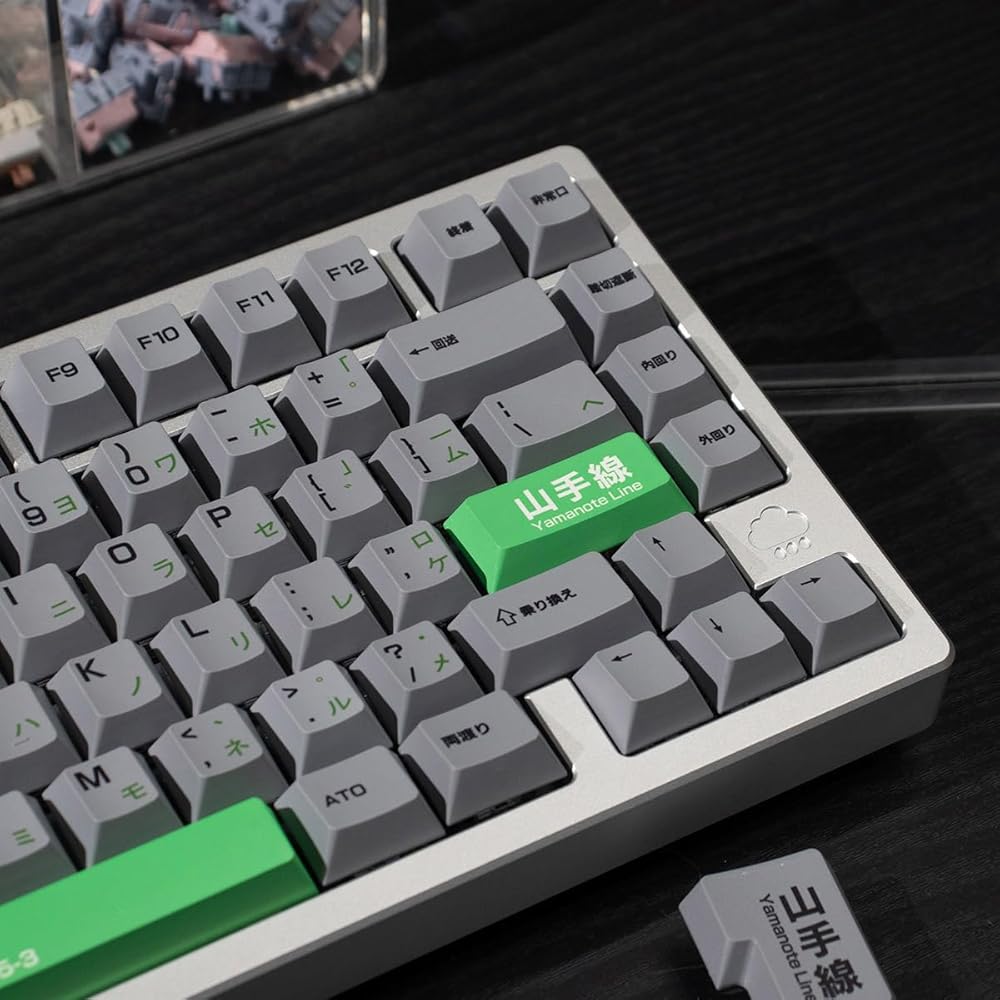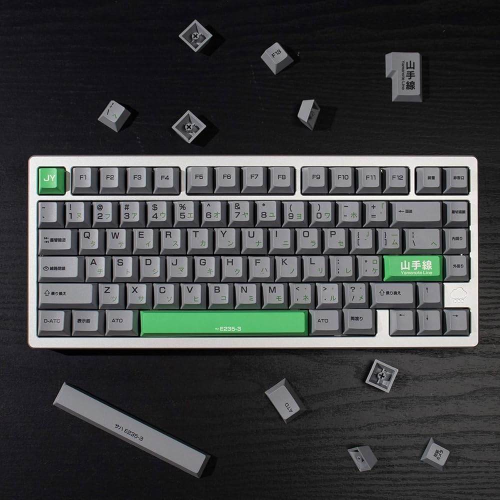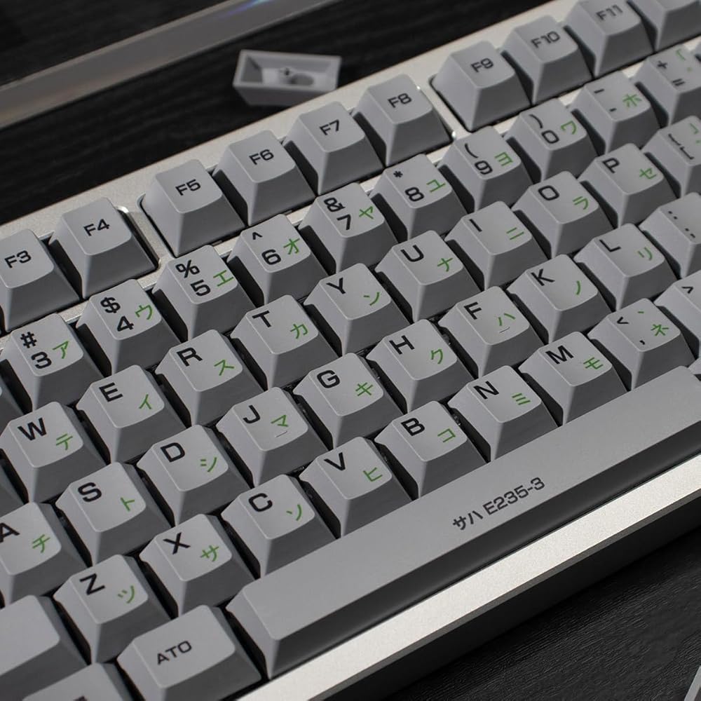 • Japanese Keycaps: Grey and green keycaps adds a modern touch to any gaming keyboard; Each keycap features beautifully printed Japanese characters