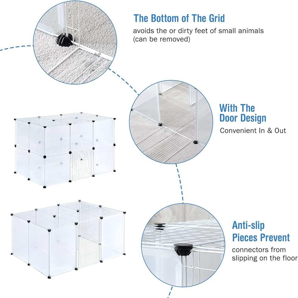 • 【تركيب بدون أدوات】سهلة التركيب والفك وإعادة التهيئة بدون أي أدوات؛ ببساطة قم بتثبيت الألواح مع الموصلات. بالإضافة إلى ذلك، من المريح أيضًا تفكيكه إذا كنت بحاجة إلى تخزين أو تحريك قفص اللعب.