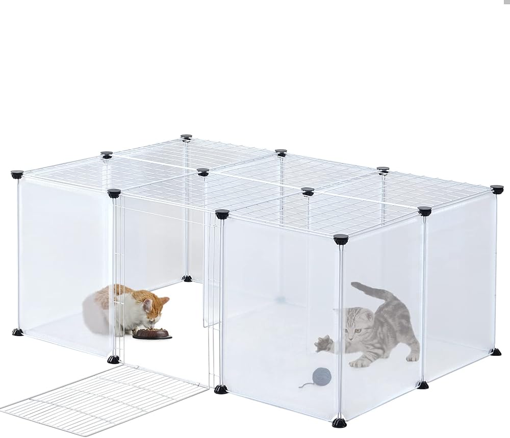 • 🐱【تصميم من طبقتين】28 قطعة من الألواح مقاس 13.7 انش × 13.7 انش مع بابين سهلة التنظيف وتسمح لك بمراقبة الحيوانات الأليفة من جميع الاتجاهات. يمكن تخصيص هذه الألواح بحرية لأي شكل أو حجم، بناءً على تصميم المنزل الفعلي وأحجام مختلفة من الحيوانات الأليفة والاحتياجات الشخصية.