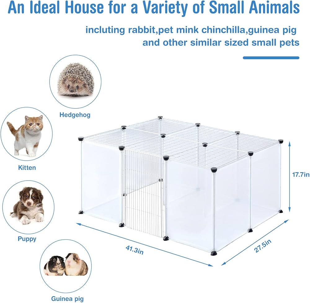 • 🐶【للحيوانات الصغيرة】هذا قفص لعب مثالي للحيوانات الأليفة الصغيرة، مثل الجراء والخنازير الغينية والأرانب والقوارض والقطط الصغيرة والهامستر وما إلى ذلك. يحافظ قفص لعب الحيوانات الأليفة هذا على صديقك المكسو بالفراء مقيدًا بأمان مع توفير مساحة أكبر للعب والراحة.