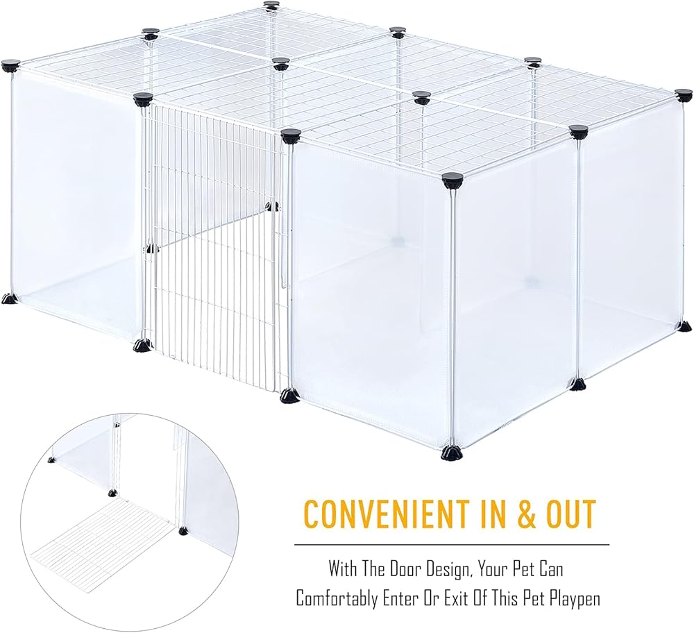 • 【هيكل قوي】مصنوع من الستيل عالي الجودة والبلاستيك المقاوم، قفص اللعب الخاص بنا قوي بما يكفي لمنع الأضرار التي تسببها الحيوانات الأليفة الصغيرة. بالإضافة إلى ذلك، يمكن أن يجعله هيكله المتين كسياج مثالي للأثاث الآخر في المنزل.