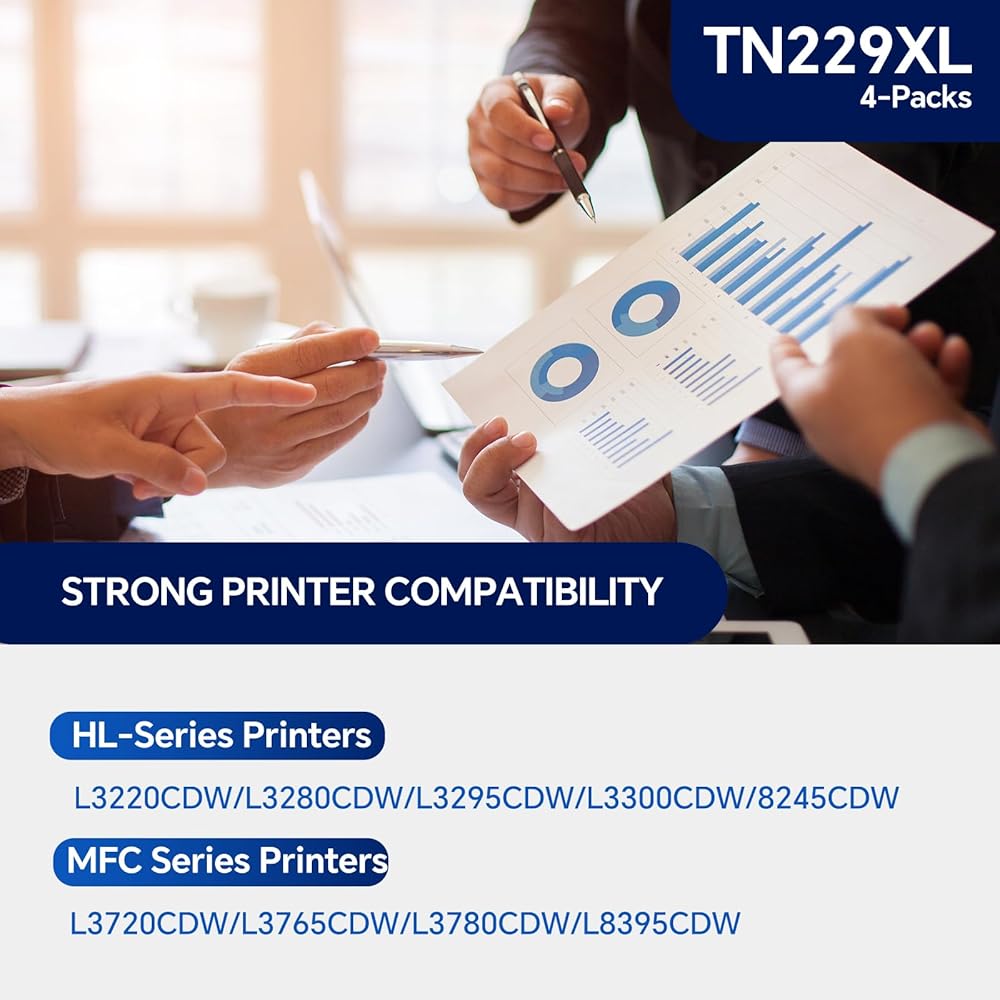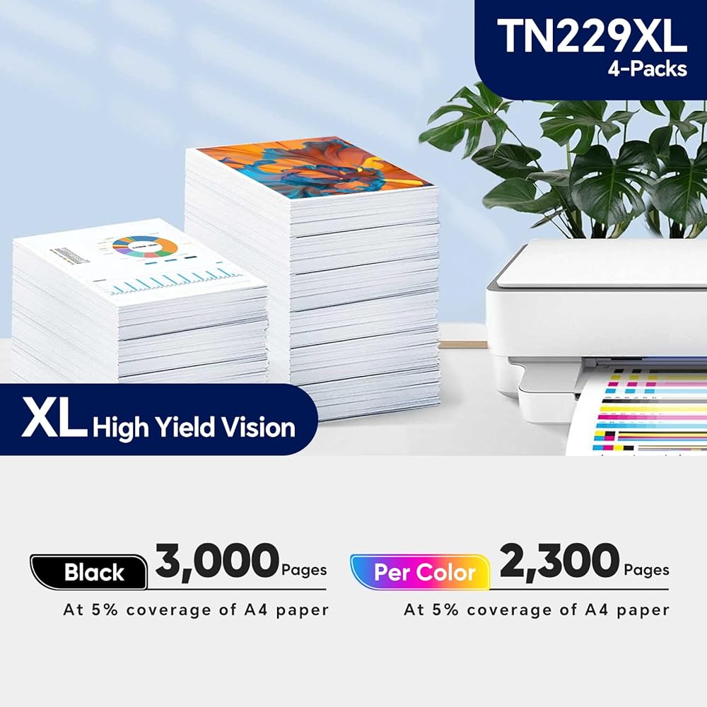 خرطوشة حبر بديلة TN229 TN229XL عالية الإنتاجية لأخيه TN229 مع طابعات Brother MFC-L3780cdw HL-3280CDW HL-L3220CDW MFC-L3720CDW HL-L3295CDW 4 عبوات