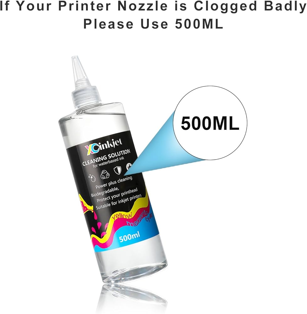 حجم أكبر: منظف الطابعة الخاص بنا يبلغ 17.64 أونصة (500 مل)، أكثر بكثير من المنتجات الأخرى (100 مل). يكفي لتنظيف 4-6 رؤوس طباعة أو 3 رؤوس طباعة مسدودة للغاية