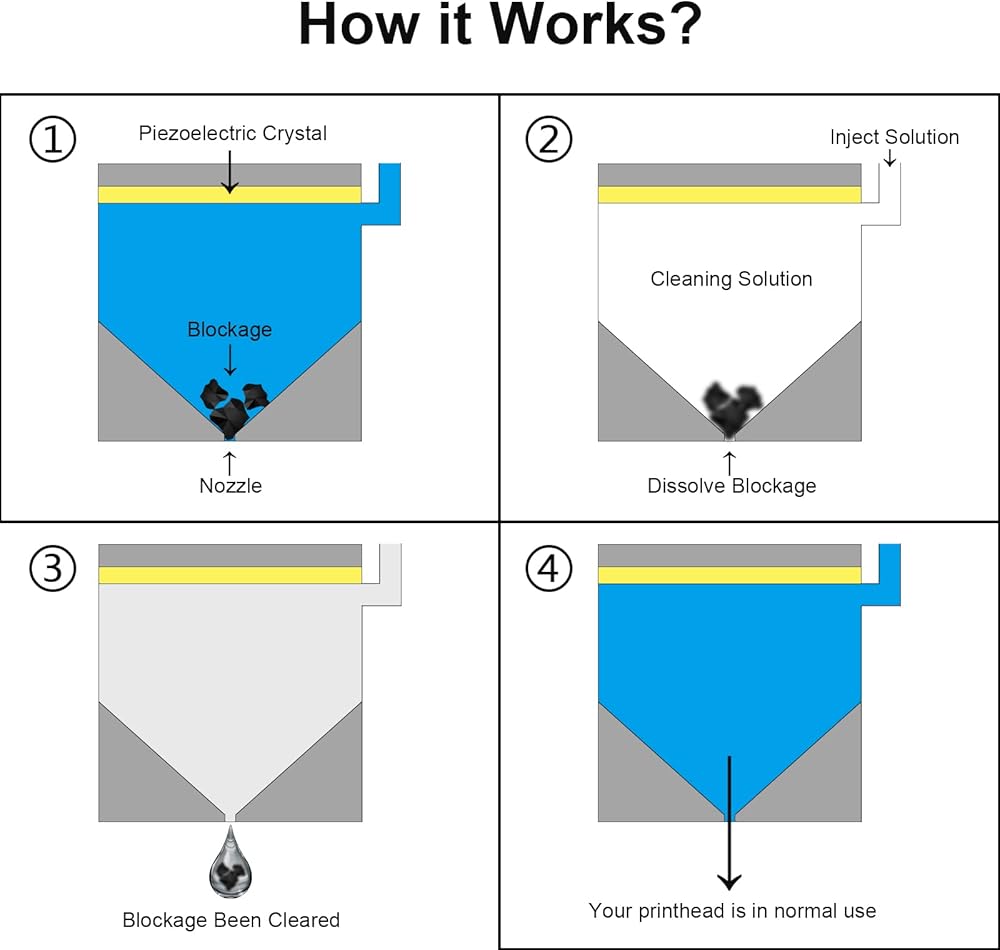 أعد طابعتك إلى الحياة: مجموعة تنظيف رأس الطباعة Xcinkjet تتميز بقوة تنظيف قوية، وتذيب جزيئات الحبر المجففة وتفتح الطابعة الخاصة بك