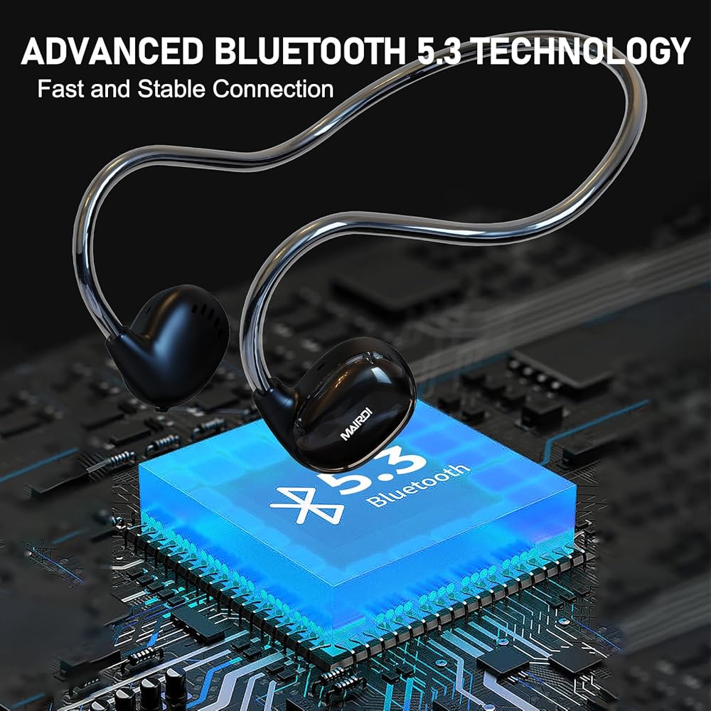 سماعة رأس لاسلكية لتوصيل الهواء من ميردي، بلوتوث 5.3 مفتوحة الأذن مع ميكروفون، وقت تشغيل 10 ساعات، سماعة رأس رياضية للجري وركوب الدراجات والتسلق والقيادة باللون الأسود
