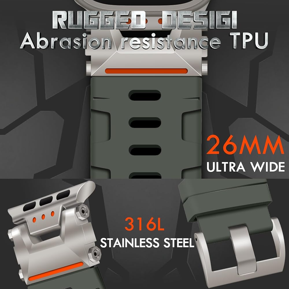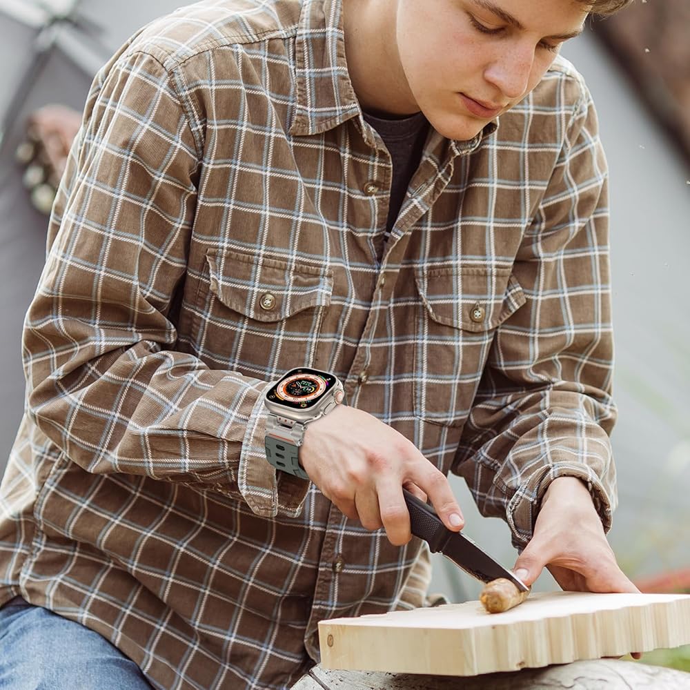 COMPATIBLE WITH : beu1st rugged sport apple watch band 49mm with stainless steel case is for Apple Watch Ultra 2/Ultra(49mm). [iWatch NOT INCLUDED]. Suitable for 5.4-8.3 inch wrists. Please choose the right size for your watch before purchase.