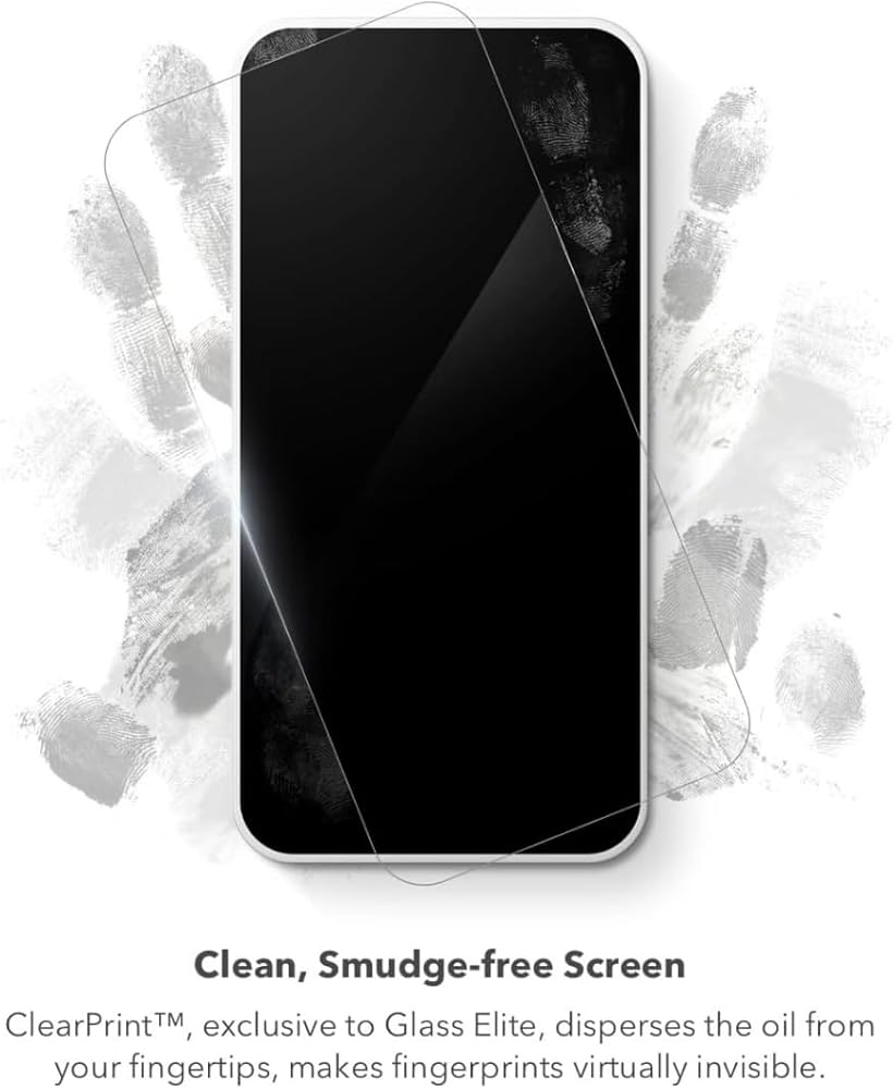 شاشة نظيفة وخالية من التلطخ: تعمل تقنية ClearPrint، وهي معالجة سطحية ثورية حصرية لشركة Glass Elite، على تشتيت الزيت من أطراف أصابعك، مما يجعلها غير مرئية تقريبًا.