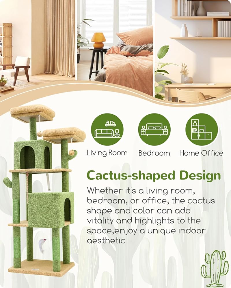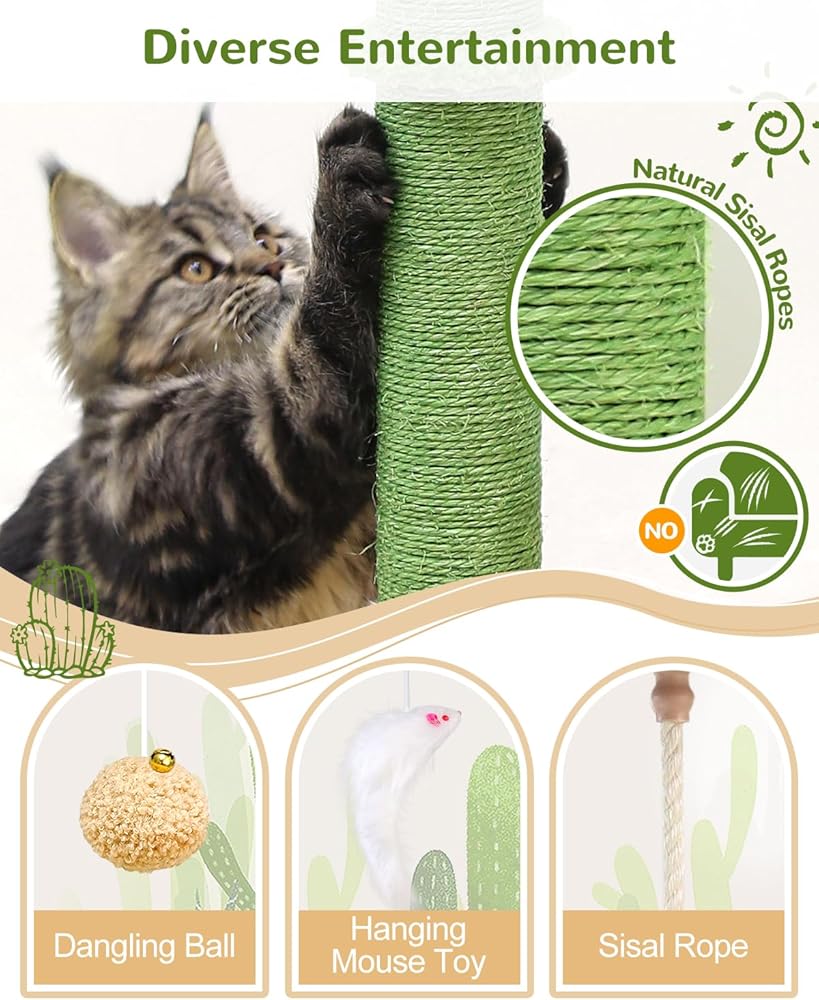 تصميم صبار فريد من نوعه: مصممة لتقليد الصبار، تتميز شجرة القطط اللطيفة لدينا بألوان خضراء نابضة بالحياة وصورة ظلية ممتعة، مما يضيف لمسة حيوية وأنيقة إلى ديكور منزلك