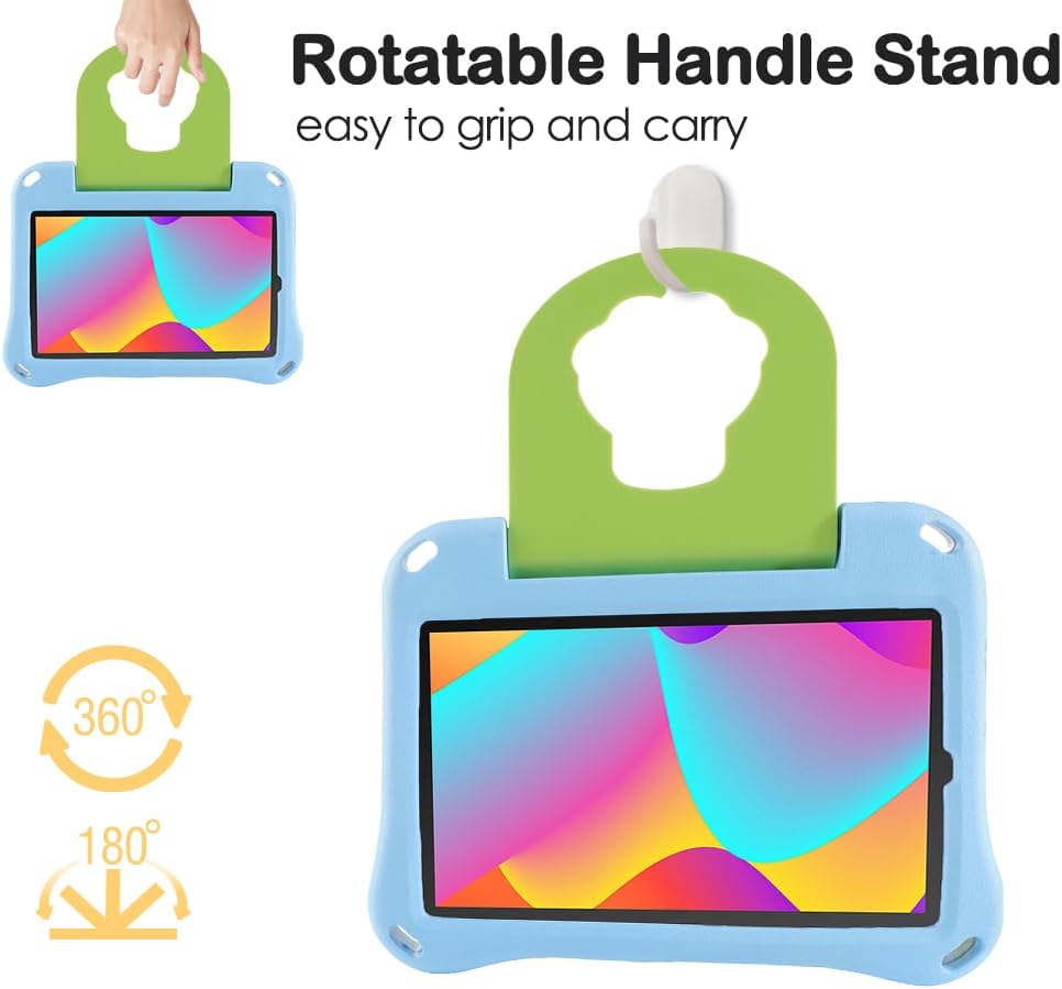 4. Featuring a Stand and Carry Handle: Our case comes equipped with a foldable, adjustable-angle stand that doesn't take up space. When opened to 180 degrees, it transforms into a convenient handle, making it easy for children to carry outdoors, while traveling, or to school. This is a child-friendly companion for learning, reading, playing, watching videos, and more.