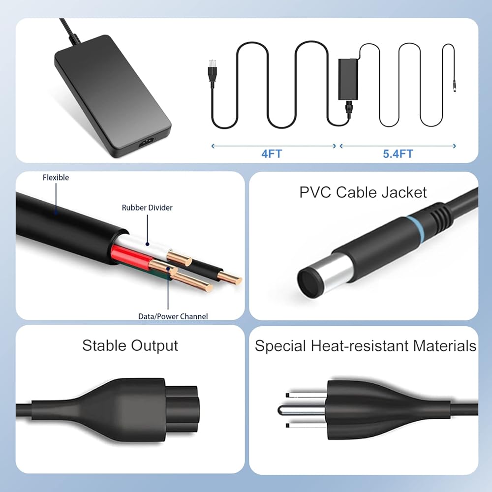 【السلامة والحماية المتعددة】شاحن Dell Alienware الجديد بنسبة 100%، معتمد من CE-/FCC-/RoHS للسلامة، أدوات حماية مدمجة متقدمة تمنع مخاطر قصر الدائرة الكهربائية والتيار الزائد والجهد الزائد والسخونة الزائدة للحفاظ على هاتفك كمبيوتر محمول ديل آمن.