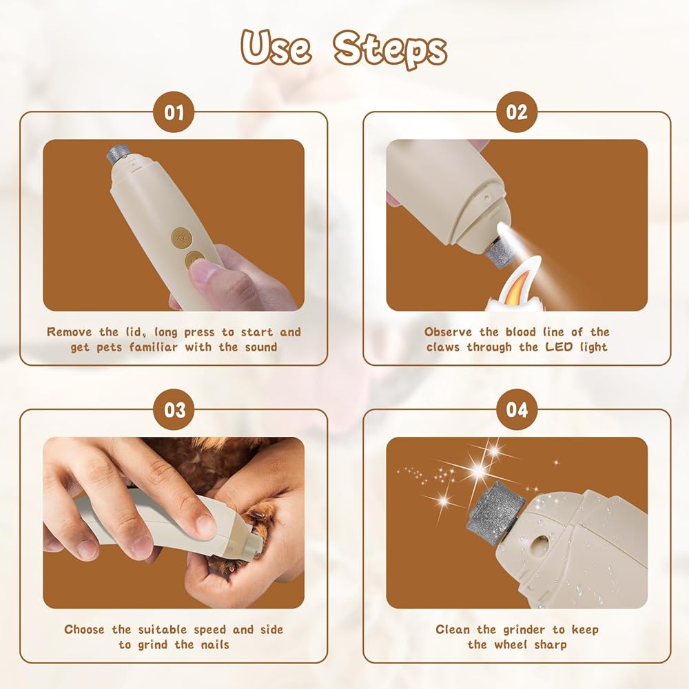 • 【آمنة وفعالة ودقيقة】تستخدم مطحنة أظافر الكلاب Tinioey مثقاب طبل ماسي متقدم لضمان طحن سريع وآمن ودقيق لأظافر الحيوانات الأليفة. مع أداة تشذيب أظافر الكلاب هذه، يمكن للحيوانات الأليفة الاستمتاع بتصفيف أظافرها في المنزل بأمان. مفتاح بزر واحد يجعل من السهل على المستخدمين ذوي الخبرة والمبتدئين استخدامه.