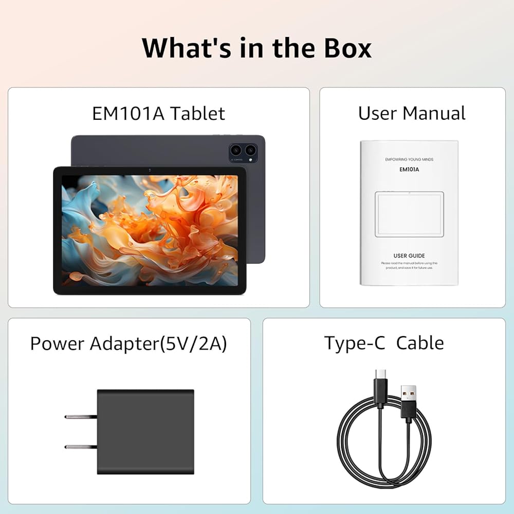 • ميزات مناسبة للعائلة + ضمان لمدة 720 يومًا: تم تصميم الجهاز اللوحي EM101A للاستخدام العائلي واليومي، بما في ذلك الرقابة الأبوية ووضع حماية العين ومساعد الصوت AI وبرنامج التقويم المثبت مسبقًا، ويدعم تقسيم الشاشة ونسخ الشاشة. نقدم ضمانًا خاليًا من القلق لمدة 720 يومًا وخدمة عملاء على مدار 24 ساعة. اشتري واستخدم بثقة.