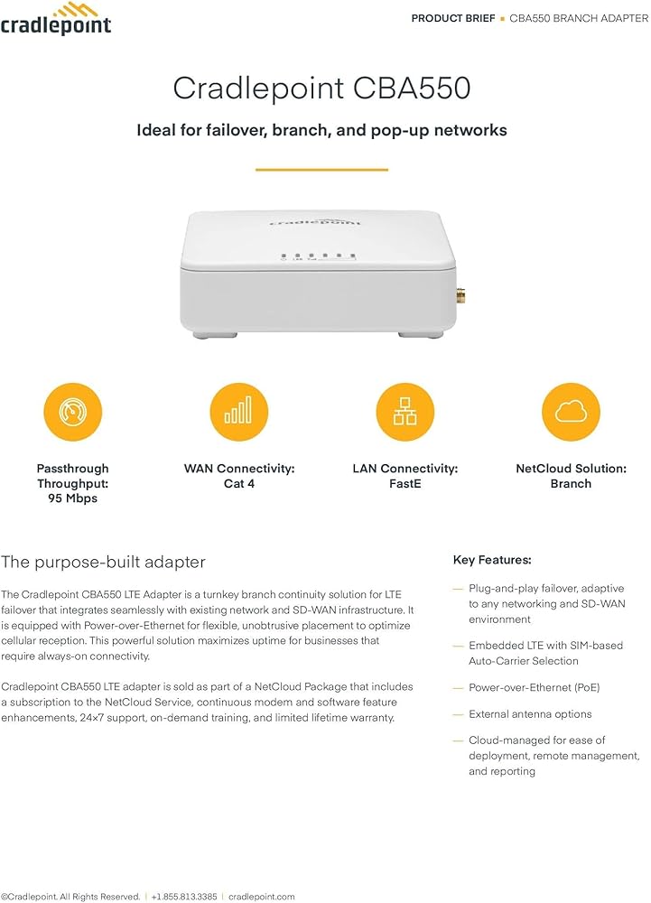محول CBA550 (مودم 150M-D) مع NetCloud Essentials لمدة عام واحد لمحولات فرع LTE (قياسية) مع الدعم