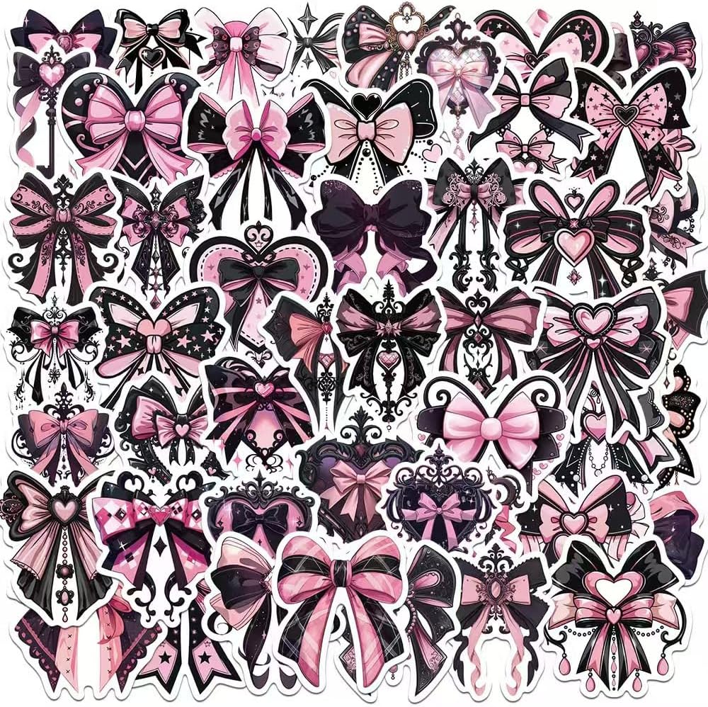 • 100 قطعة من ملصقات القوس باللونين الأسود والوردي، ملصقات على شكل فيونكة لطيفة باللونين الوردي والأسود، ملصقات جمالية لديكور حفلات أعياد الميلاد باللون الأسود والوردي، مناسبة لإمداد زجاجات المياه بديكور القصاصات، للنساء