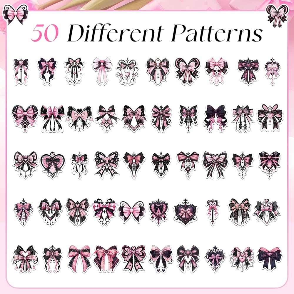 • [مجموعة مذهلة من ملصقات القوس الوردي والأسود] هذه المجموعة المكونة من 100 ملصق على شكل قوس باللونين الأسود والوردي مثالية لأي شخص يبحث عن إضافة لمسة من الأناقة والسحر إلى أغراضه اليومية أو ديكور الحفلات. يتميز كل ملصق على شكل قوس بتصميم فريد وأنيق، مما يضمن عدم وجود نسخ مكررة في المجموعة. تعتبر ملصقات القوس هذه مثالية لإضفاء الطابع الشخصي على الهدايا أو إنشاء الحرف اليدوية أو تزيين متعلقاتك بأناقة.